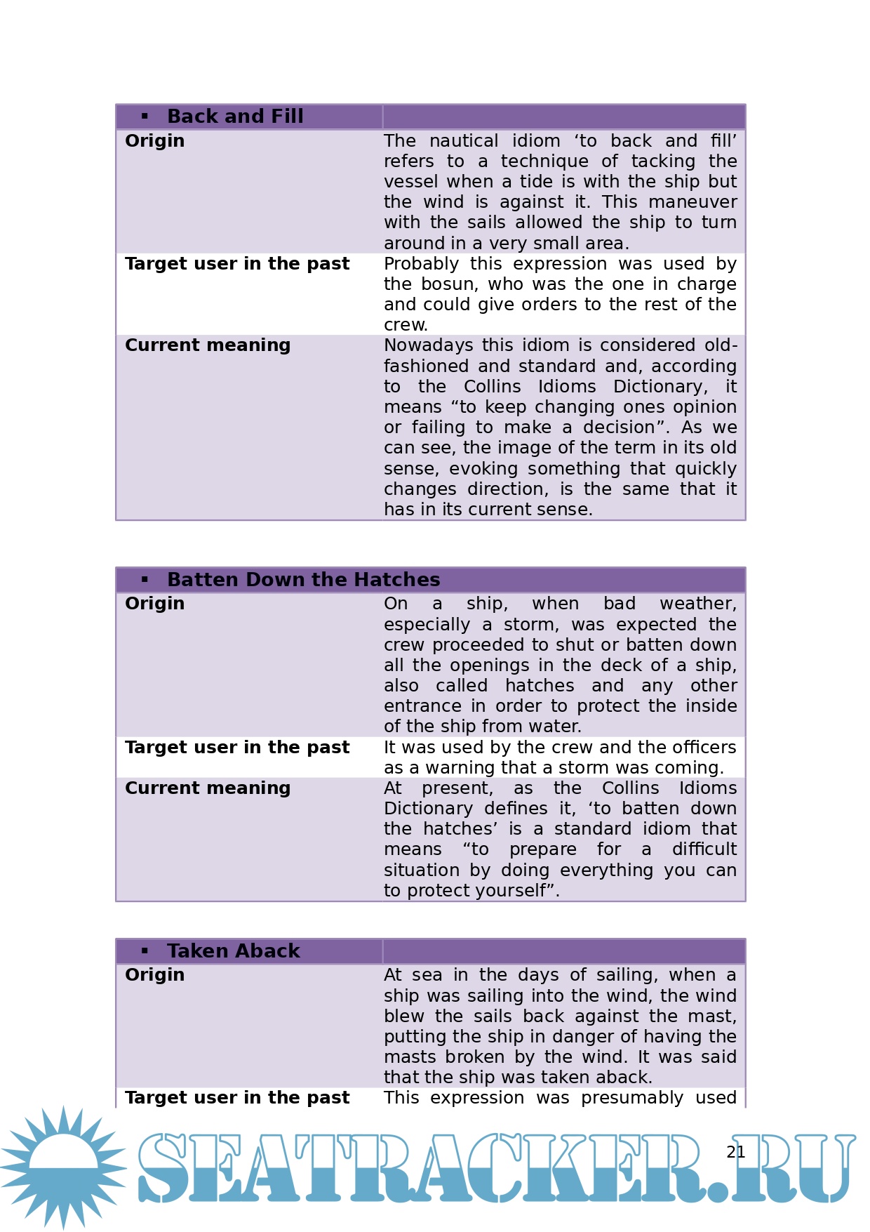 Description: This study analysed fifteen expressions of nautical origin, proved their current usage in written English and explained some possible processes that lead to their validity in everyday language. This was accomplished through linguistic analyses of the idioms and of examples in use, and through linguistic theory. The study consists of four sections which, in order of appearance, are a historical contextualisation, a study of the origin and the meaning of fifteen nautical expressions, an analysis of the terminology through real examples in everyday language, and a linguistic explanation of the processes of change in language. These analyses and explanations revealed that some terms of eighteenth-century nautical jargon are still in use in everyday written English, that some of these expressions are used in a wider range of registers than dictionaries state, and that one of the possible explanations for the language spread is ‘lexical diffusion’. This study also points to the possibility that some of the expressions under study might fall into disuse and suggested further research on the nautical influence in everyday spoken English.