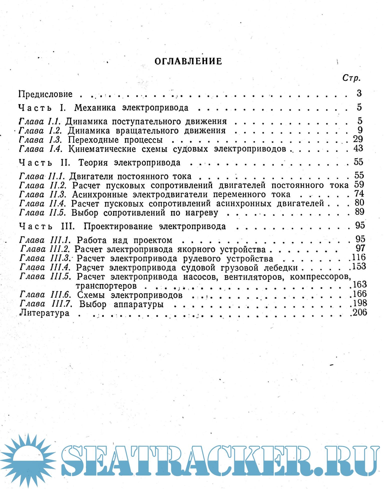 Год выпуска: 1972 Язык: Русский Автор: Соломатин В. М. Жанр: Курсовая работа, Практическое пособие, Учебное пособие Издательство: ВЫСШАЯ ШКОЛА Издание: Москва ISBN: УДК 629.12.02/09 : 62—83(075) Формат: PDF Качество: Отсканированные страницы + слой распознанного текста Количество страниц: 217 Описание: Книга является первой попыткой создать развернутое учебное пособие по курсовому проектированию судовых электроприводов. В ней содержатся необходимые теоретические сведения для составления курсовых проектов, приводятся унифицированные методики с конкретными примерами расчета основных судовых механизмов и даются типовые кинематические принципиальные электрические схемы электроприводов. Предназначается для учащихся электромеханической специальности речных училищ и техникумов. Может быть использовано учащимися других специальных учебных заведений и работниками' проектио-конструкторских бюро речного транспорта. Доп. информация: Курсовым проектированием прокладывается мост между теоретическими сведениями по изучаемому предмету в институте, техникуме или училище и практической деятельностью будущего специалиста на производстве. Электропривод (в том числе и судовой) в настоящее время занимает господствующее положение среди всех видов привода рабочих машин промышленности и транспорта, изучение его предусматривается программами всех технических учебных заведений, теоретический курс которых завершается курсовым и дипломным проектированием. Курс электропривода обобщает выводы и законы многих технических дисциплин, в том числе математики, физики, механики, теории машин и механизмов, деталей машин, теоретической электротехники, электрических машин, теории автоматического регулирования и др. Грамотное проектирование электропривода невозможно без глубоких знаний особенностей методики расчета, конструкции, принципа действия, условий эксплуатации, основных характеристик рабочей машины и технологических операций, выполняемых ею. В правильном сочетании рабочих характеристик приводного механизма, механических характеристик электродвигателей и систем управления ими может быть получена простота, надежность, высокая производительность, рентабельность и экономичность современного электропривода.