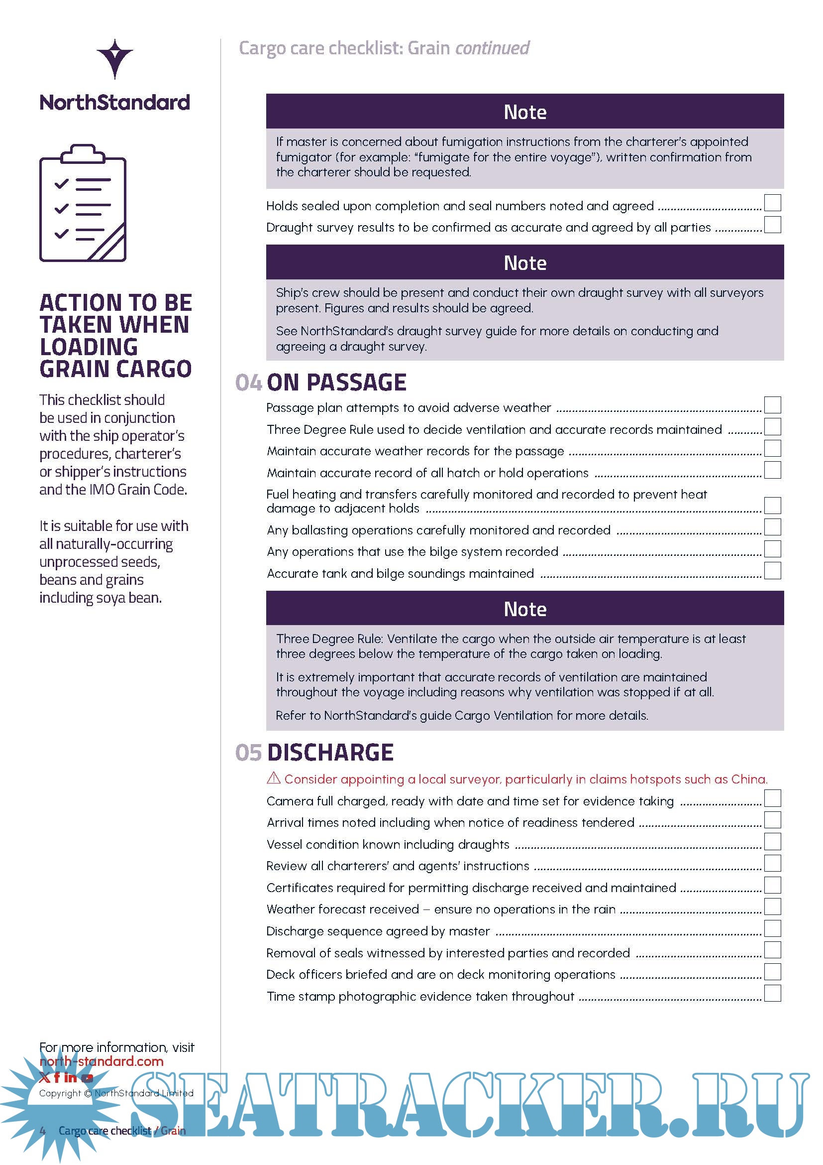 Cargo Care Checklist: Grain - The North of England P&I Association Limited [2020, PDF]