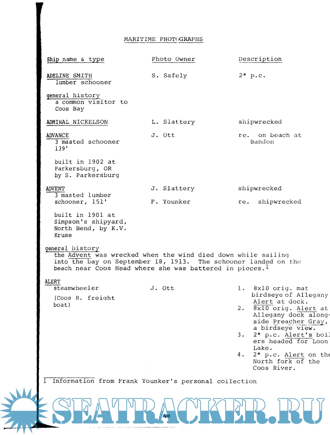 Inventory of Maritime Antiques and Relics of the Coos Bay Area