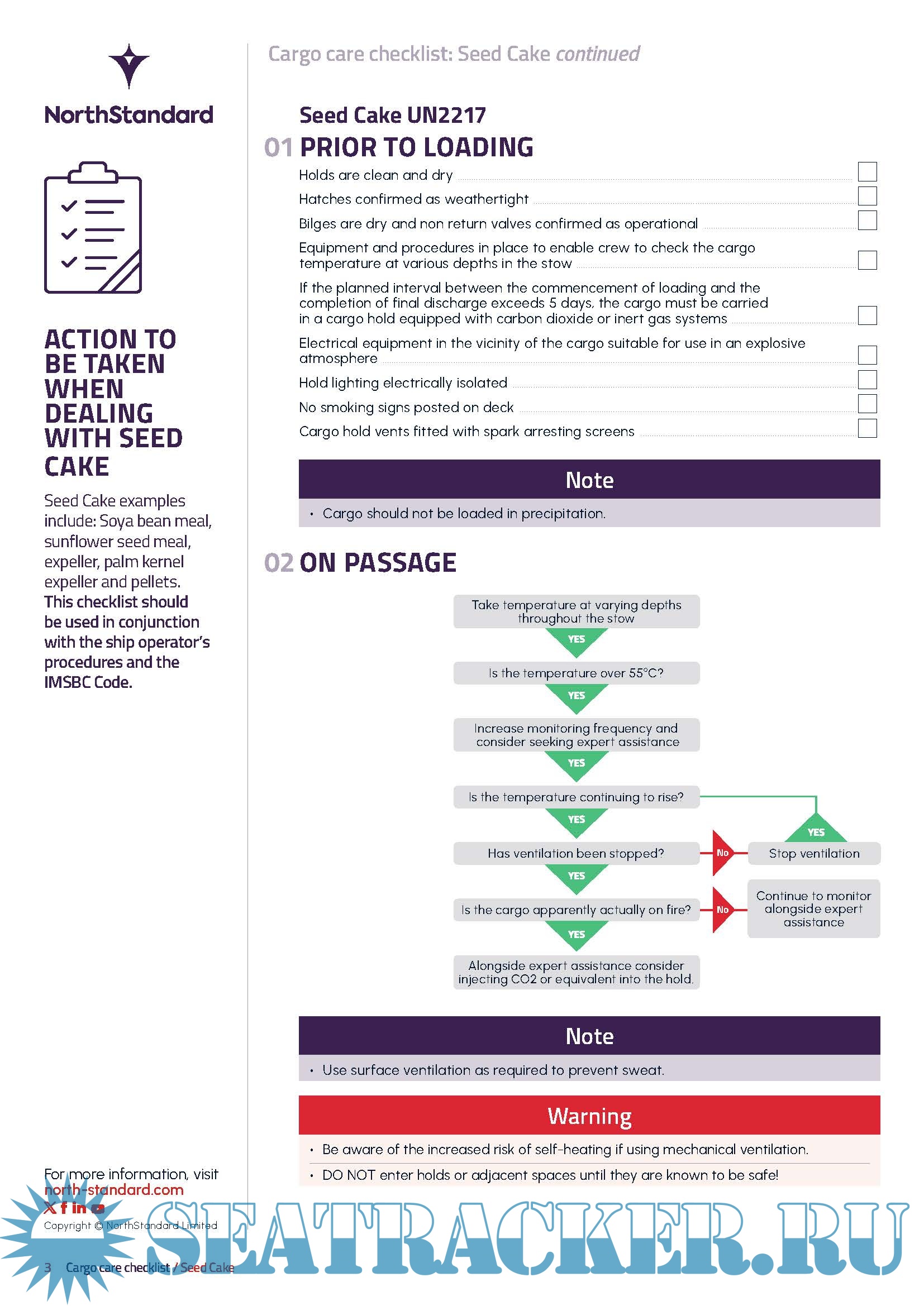 Description: Action to be taken when dealing with Seed Cake cargos.