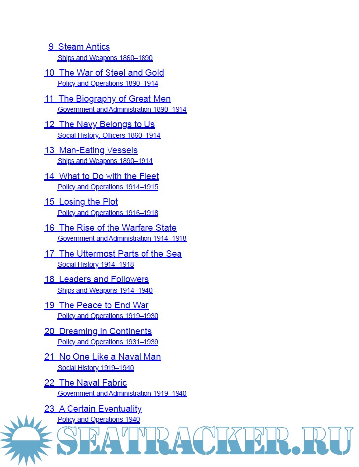 All the great actions are here, from Navarino in 1827 (won by a daringly disobedient Admiral Codrington) to Jutland, D-Day, the Battle of the Atlantic and the battles in the Pacific in 1944/45 in concert with the US Navy. The development and strategic significance of submarine and navy air forces is superbly described, as are the rapid evolution of ships (from classic Nelsonic type, to hybrid steam/sail ships, then armour-clad and the fully armoured Dreadnoughts and beyond) and weapons. The social history of officers and men – and sometimes women – always a key part of the author’s work, is not neglected.