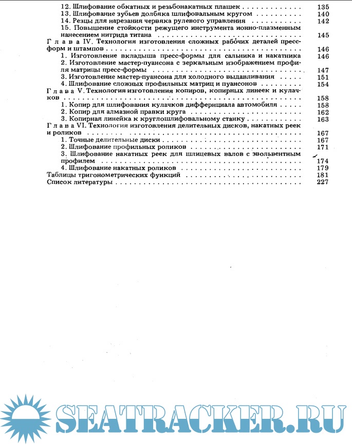 Описание: Обобщен опыт применения профильного шлифования абразивными и алмазными кругами при изготовлении измерительного и режущего инструмента, штампов и пресс-форм. Описаны оборудование и приспособления, применяемые при профильном шлифовании, шлифовальные круги, способы их правки по профилю, а также специальные методы измерений. Приведены сведения по тригонометрическим расчетам точек профилей, применяемых в практике профильного шлифования.