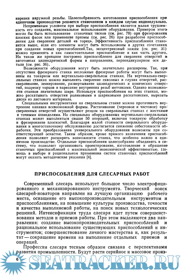 Описание: Книга написана на основании многолетнего изучения передового опыта рабочих машиностроительных предприятий; описаны приспособления для сверлильных, токарных и фрезерных станков.