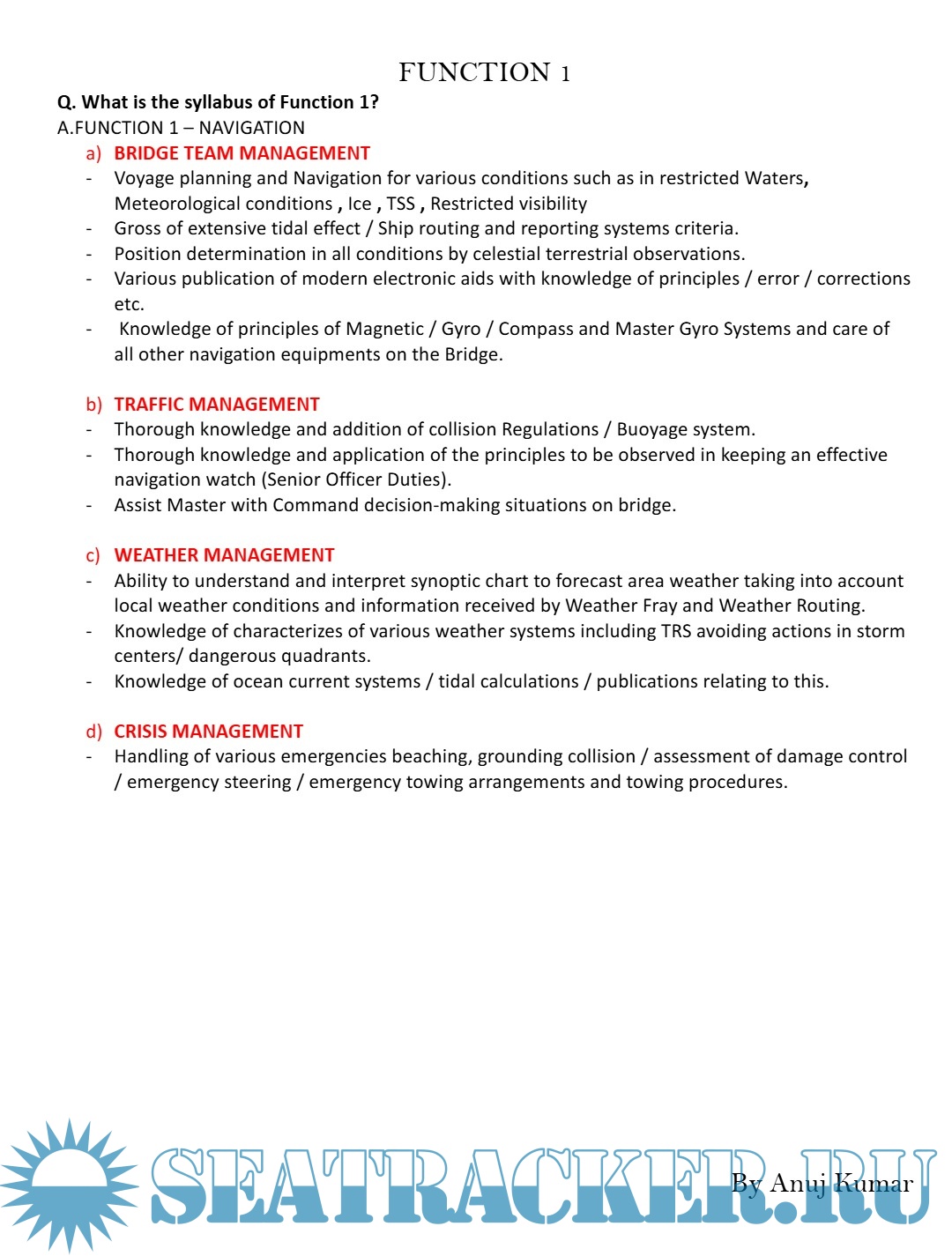Oral Notes (Function 1) for Chief Mate F.G. Mercantile Marine Department (MMD), India Examinations…