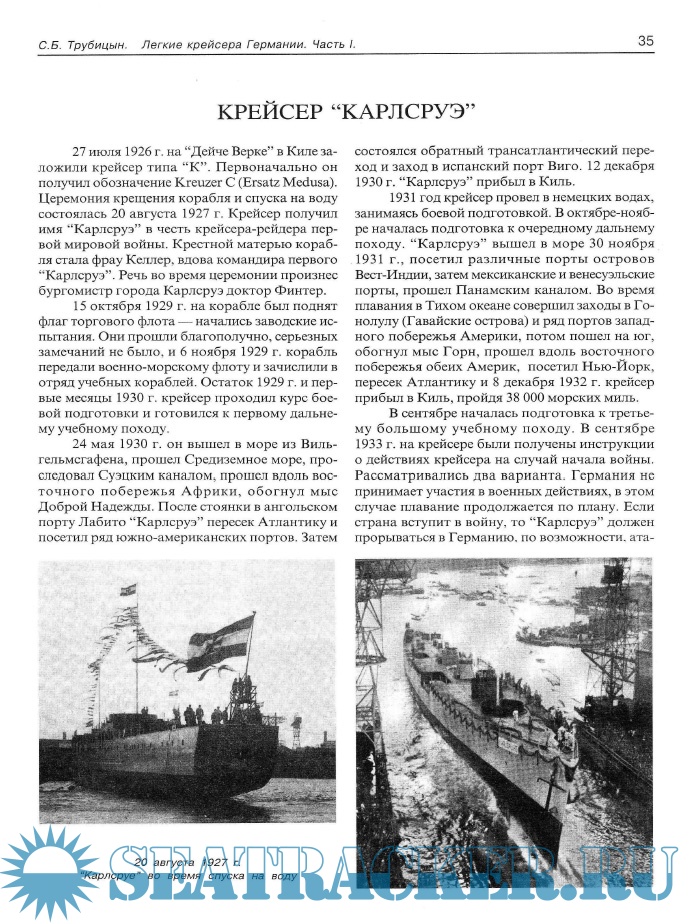 Год выпуска: 2003 Язык: Русский Автор: С.Б.Трубицын Жанр: Историческое Издательство: АНТ-Принт Издание: Серия "Боевые корабли мира" Формат: PDF Качество: Отсканированные страницы Количество страниц: 112 Описание: Эта книга повествует о лёгких крейсерах Кригсмарине таких, как «Эмден»(Emden), «Кёнигсберг»(Konigsberg), «Карлсруэ»(Karlsruhe) и «Кёльн»(Koln). В книге подробно описаны история создания, боевого применения лёгких крейсеров Германии в период с 1921 по 1945 год. Книга содержит большое количество чертежей, схем и уникальных фотографий.
