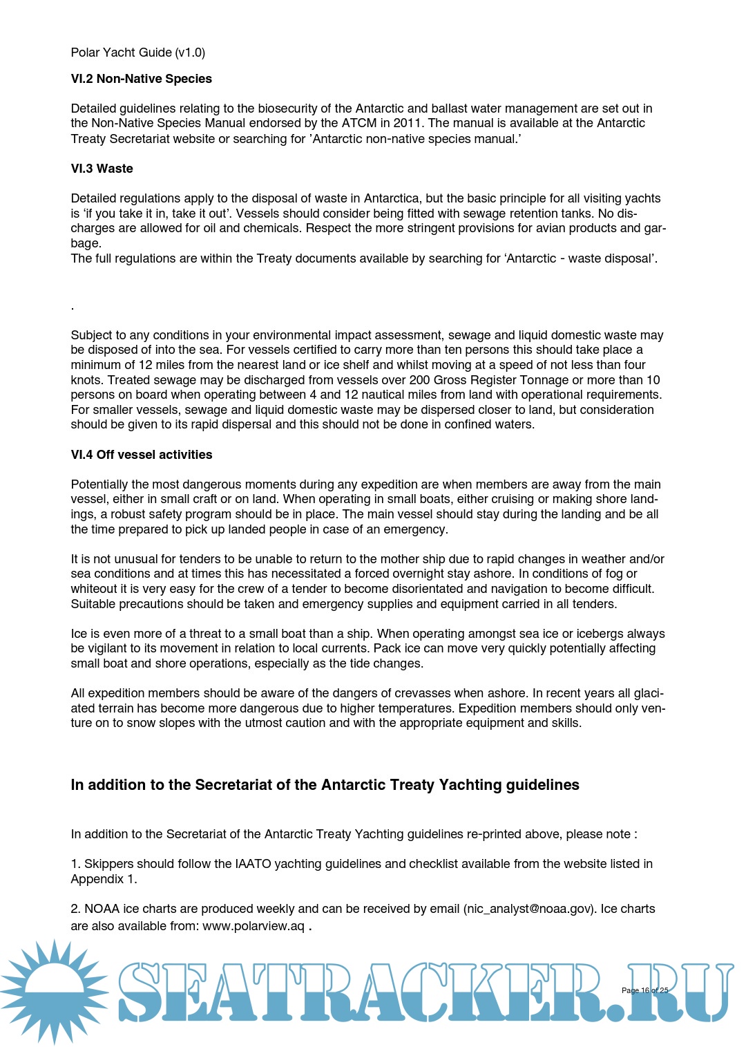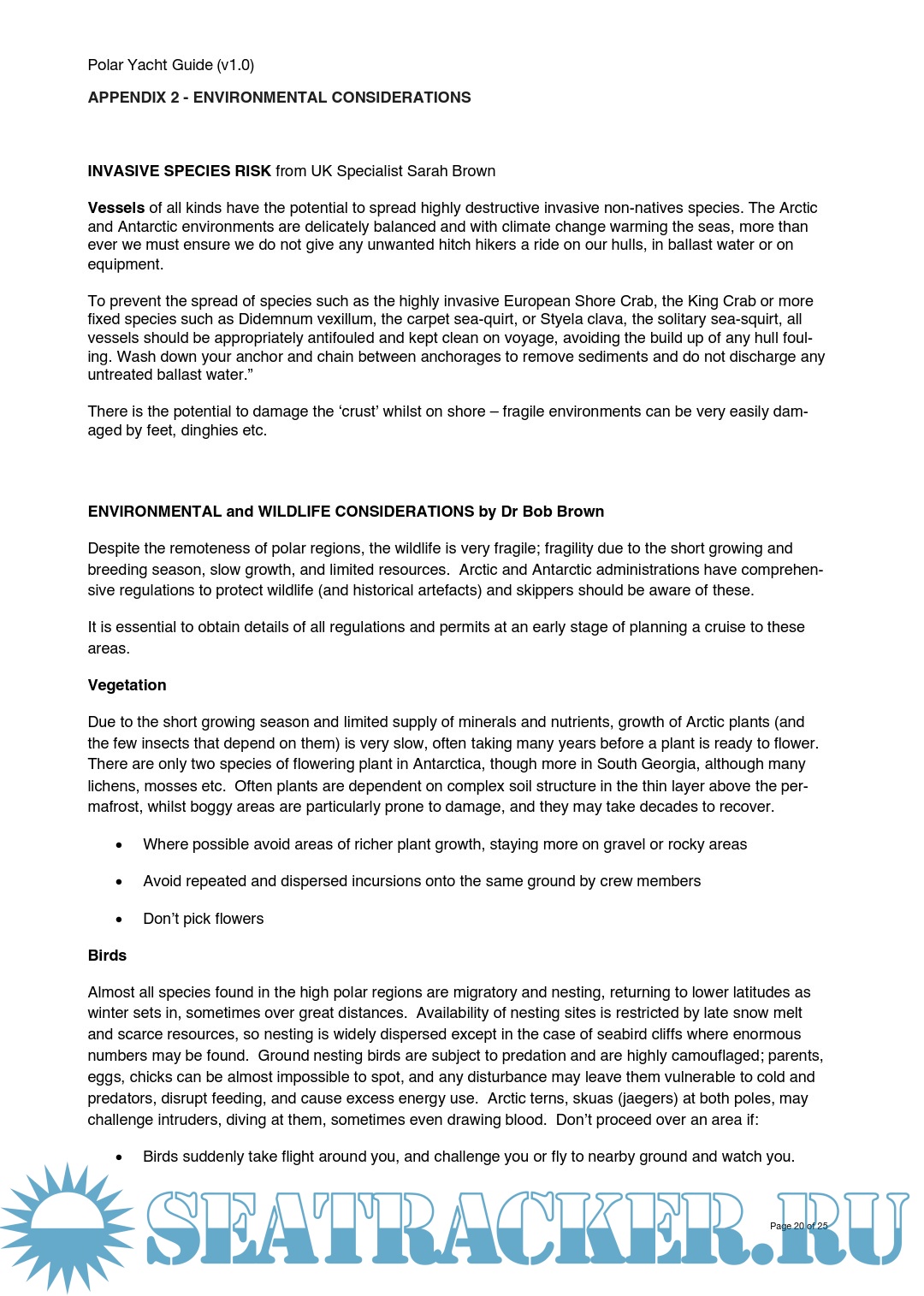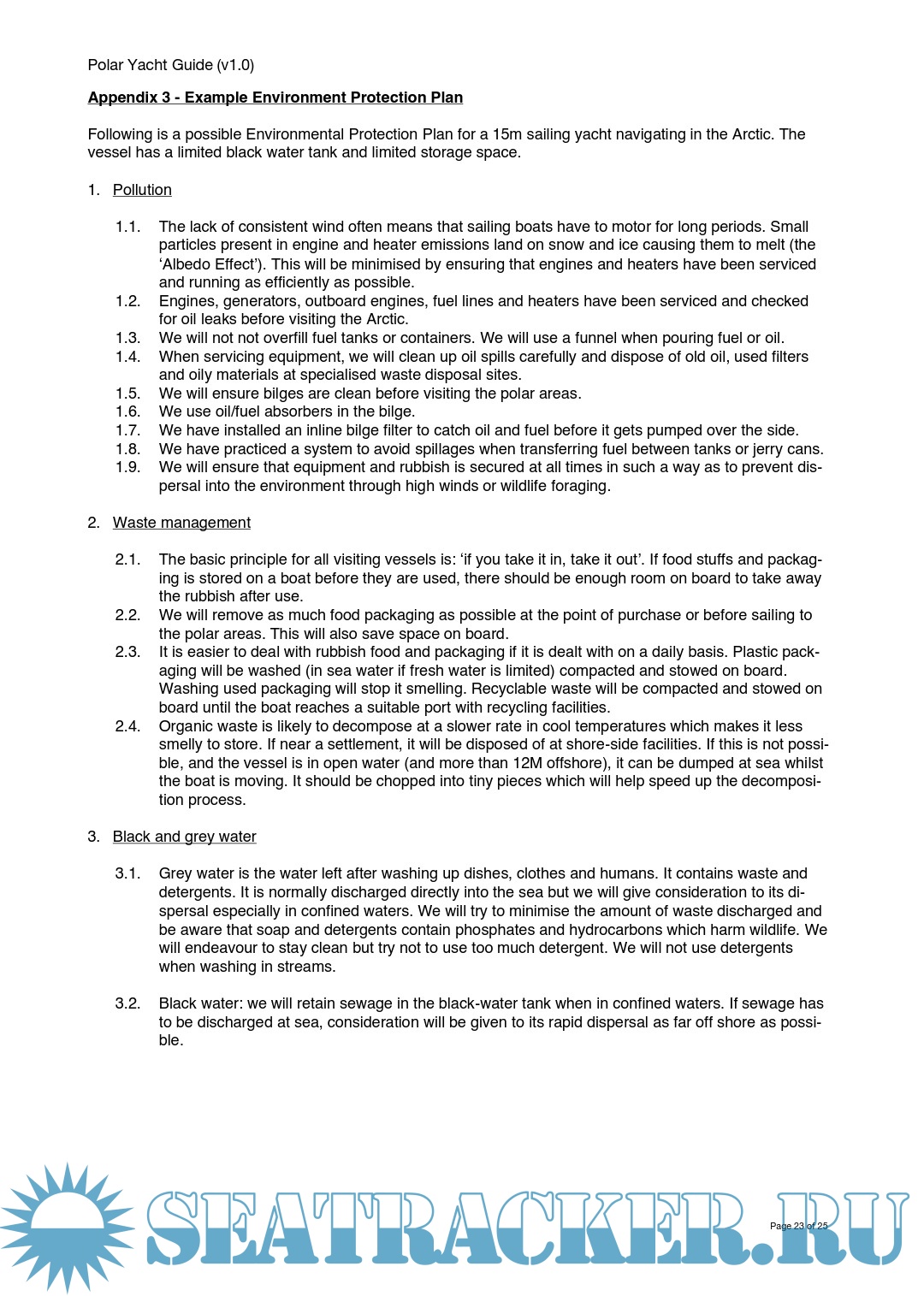 Description: GOAL To encourage safe and environmentally-friendly navigation by Pleasure Yachts not engaged in trade, of less than or equal to 300 GT in Arctic and Antarctic Polar Waters*. Attention is drawn to the Polar Code published by IMO for SOLAS ships. The Polar Yacht Guide sets out to offer, in parallel with the Polar Code, advice and guidance of a more detailed nature than is possible in the Polar Code, and at the same time particularly or uniquely relevant to Pleasure Yachts.