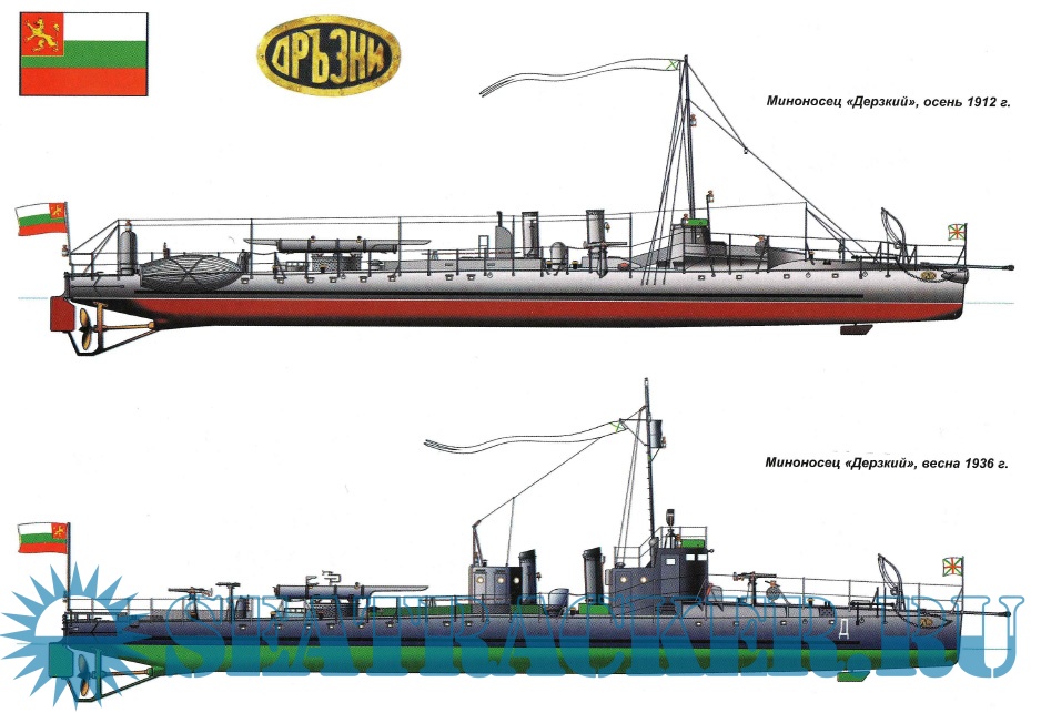 Работу по болгарским миноносцам типа "Дерзкий" специально для нашего журнала на основе архивных материалов подготовили болгарские историки Иван Янков (г. Пловдив) и д-р Александр Вычков (А. Въчков; г. Варна) в соавторстве с Романом Витальевичем Лапшиным (г. Запорожье, Украина).