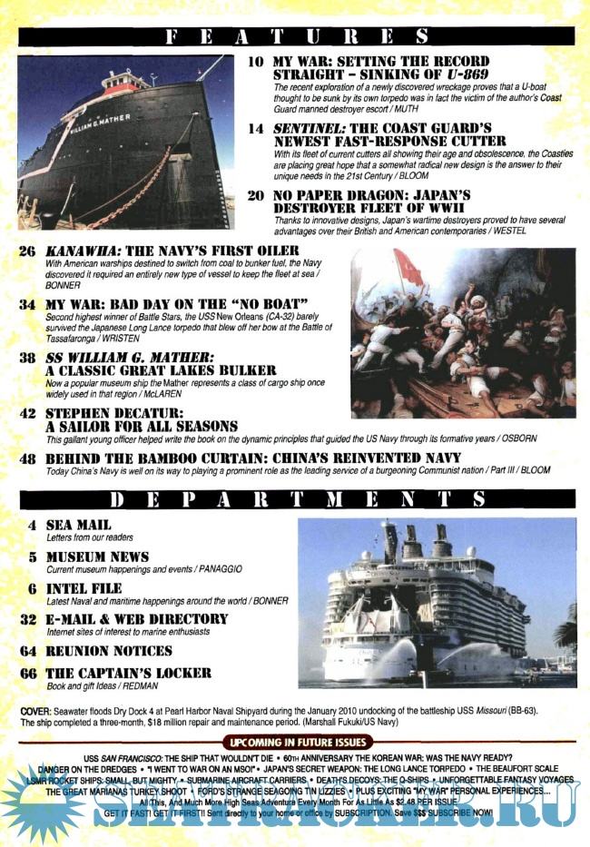 Year: 2010 Language: English Author: Fisher E.C. Genre: Periodical publication Edition: 2010-05 Format: PDF Quality: eBook Pages count: 58 Description: Read about the world’s major sea battles and first-hand accounts from the men who fought and lived through them. From the early days of sailing vessels to the post-Cold War nuclear navies of today, Sea Classics has it all.