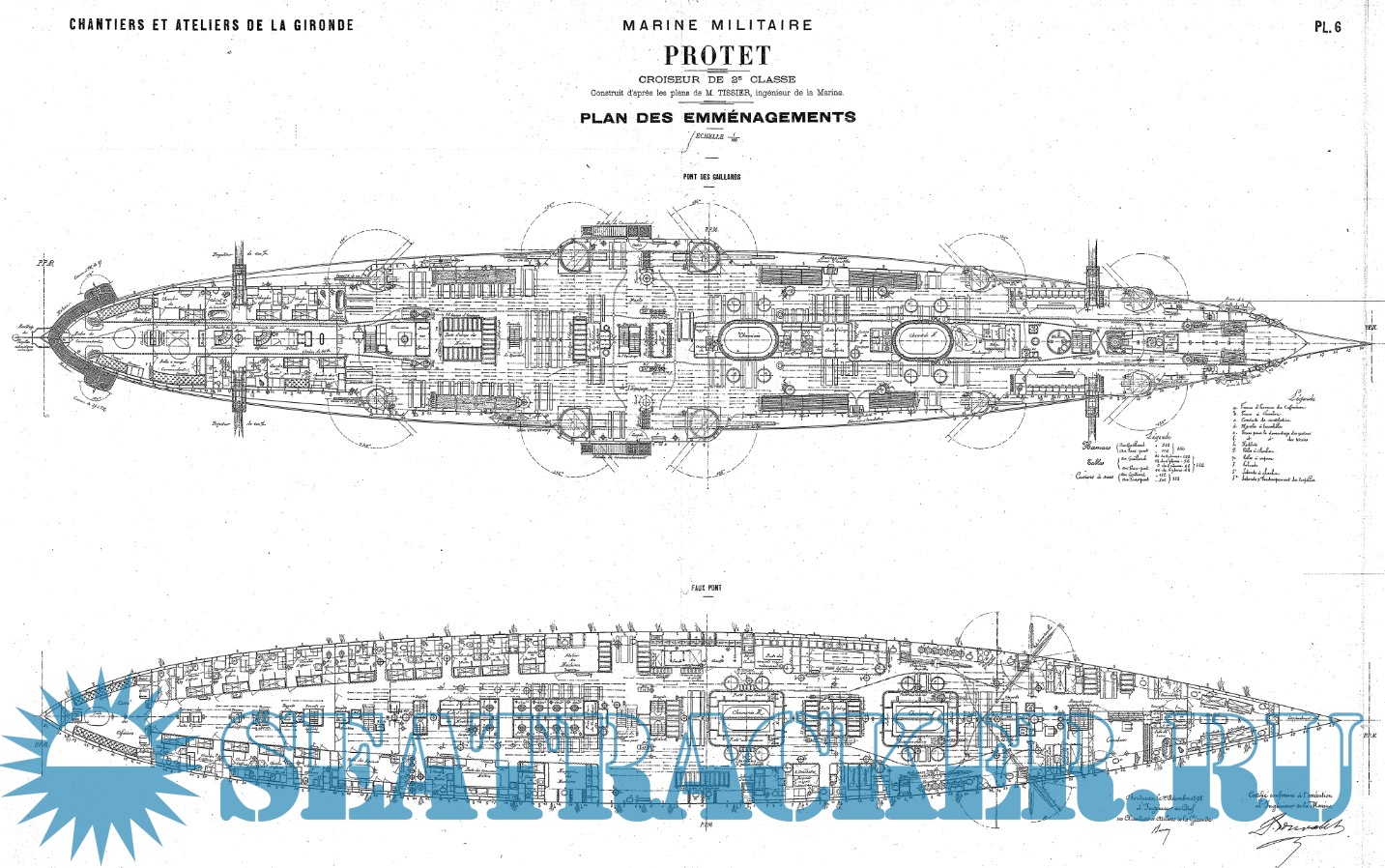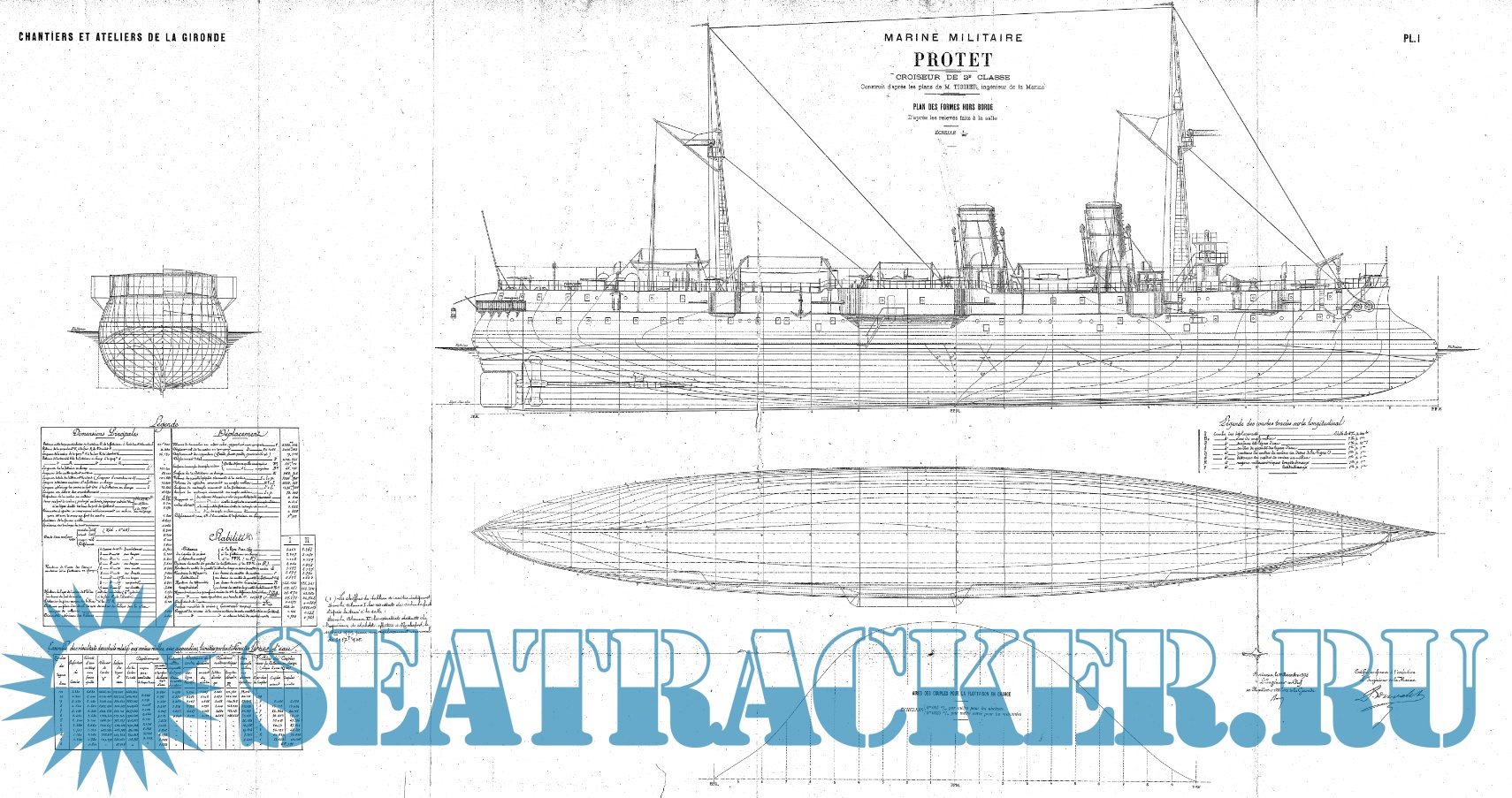 Архивные чертежи французского крейсера 2 ранга PROTET 1898 год