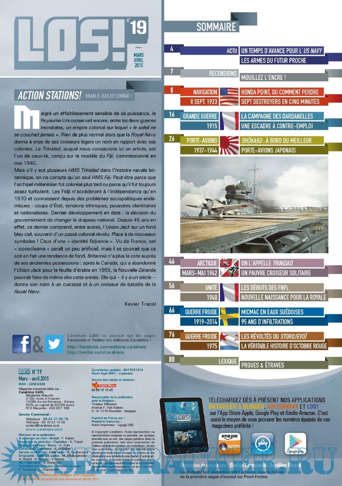 Description: LES ÉDITIONS CARAKTÈRE PRENNENT LE LARGE EN LANÇANT UN NOUVEAU MAGAZINE CONSACRÉ À LA GUERRE NAVALE !Les sujets passionnants ne manquent pas et LOS ! met un point d’honneur à les présenter au lecteur comme cela n’a jamais été fait dans la presse française jusqu’à présent. Un seul mot d’ordre pour l’équipe rédactionnelle : rigueur scientifique et présentation ludique !S’appuyant sur un fond photographique d’exception, sur des plans de bateaux et d’avions, les éditions Caraktère innovent une fois de plus en vous proposant aussi des vues 3D détaillées, le tout au service de textes soigneusement rédigés par des auteurs spécialisés. Vous comprendrez ainsi comment fonctionne un submersible, comment se déroule un combat naval, comment est conçu un cuirassé ou comment attaquent les avions-torpilleurs !Revivez au fil des pages l’aventure humaine exceptionnelle des matelots de la marine marchande affrontant les U-Boote en Arctique, ou celle des pilotes embarqués sur les porte-avions américains et japonais. Lisez les exploits des hommes-grenouilles italiens en Méditerranée, des équipages des vedettes lance-torpilles dans la Manche, des sous-marins soviétiques de la guerre froide ou des grands cuirassés de 1914-18