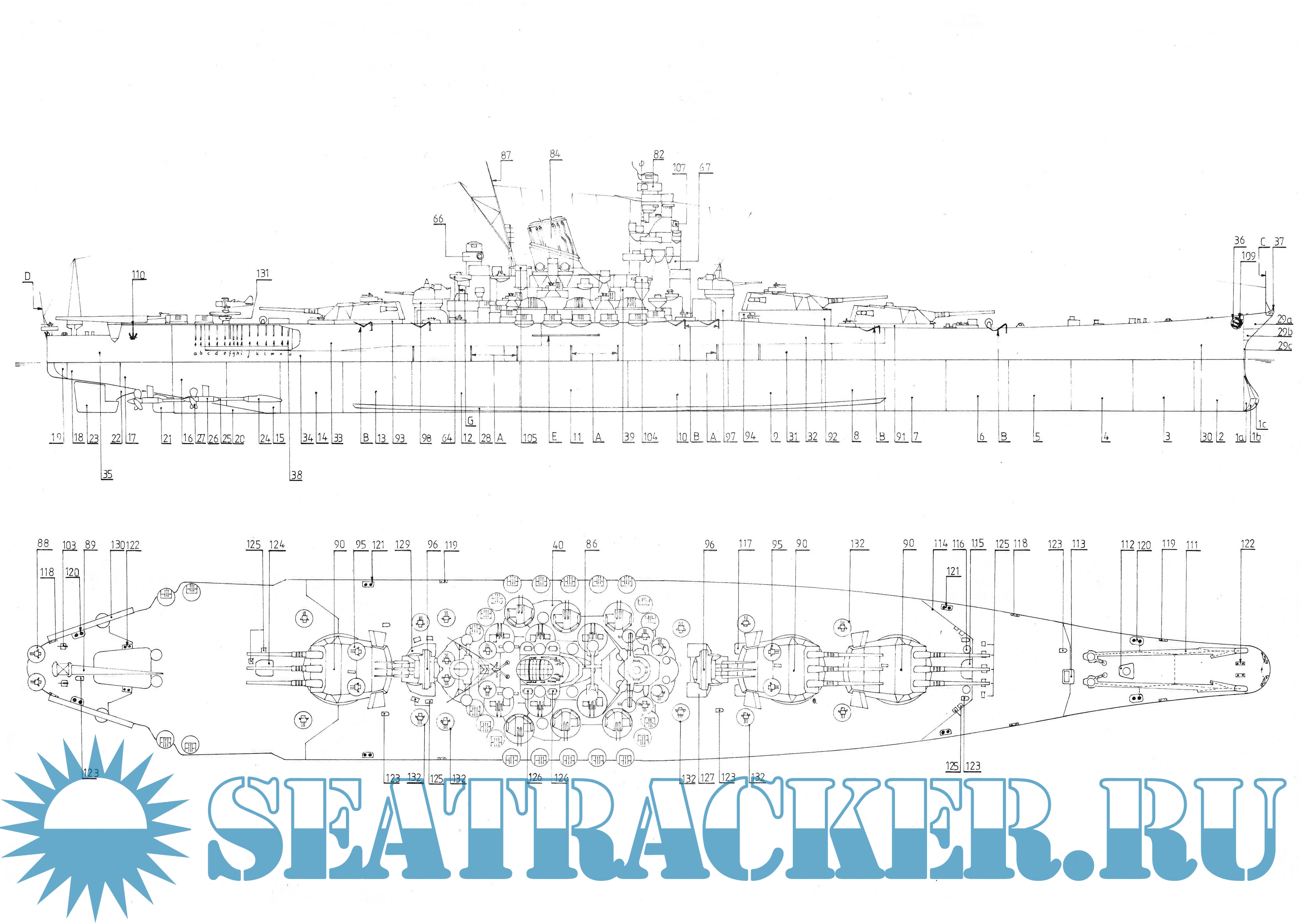 32 листа цветных выкроек и инструкций для изготовления из бумаги японского линкора IJN Yamato в масштабе 1:200