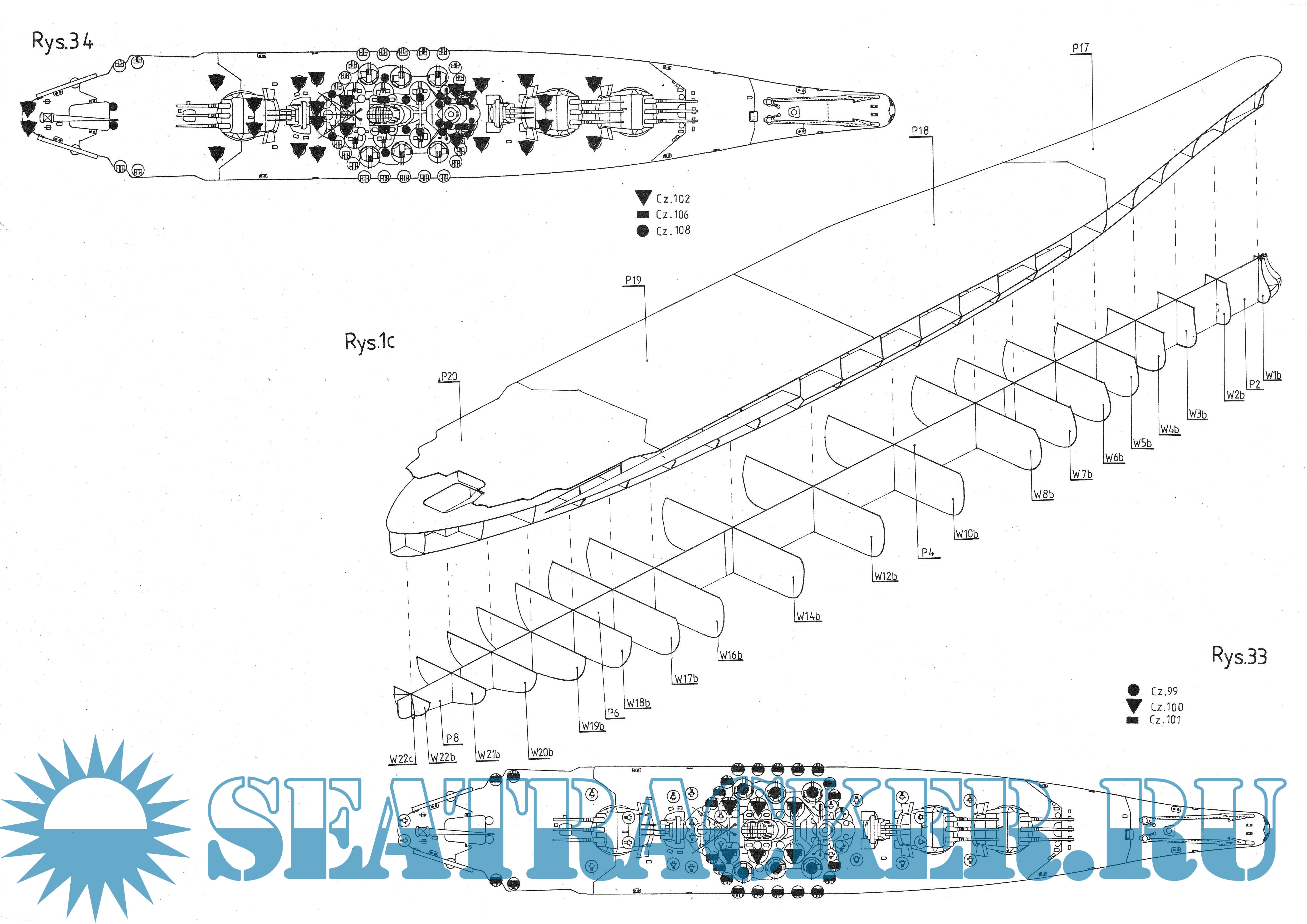 32 листа цветных выкроек и инструкций для изготовления из бумаги японского линкора IJN Yamato в масштабе 1:200Скриншоты
