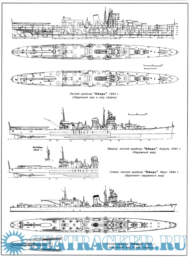 В последний год войны японские легкие крейсера, как и другие корабли Императорского флота, очень стращали от нехватки топлива и стали выходить в море значительно реже.