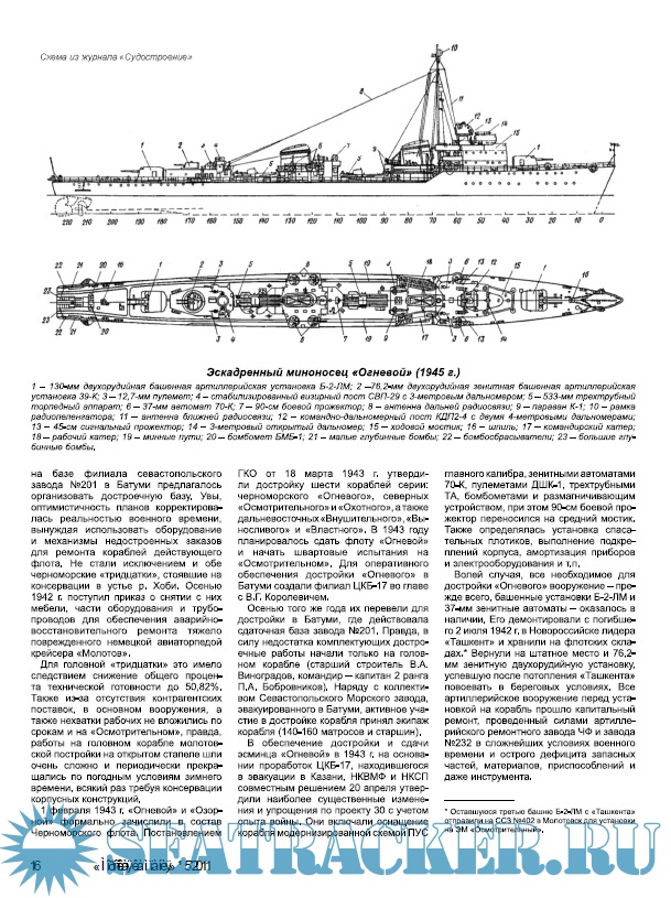Год выпуска: 2011 Язык: Русский Автор: группа авторов Жанр: Периодическое издание (журнал) Издание: 2011-05 Формат: PDF Качество: Изначально компьютерное (eBook) Количество страниц: 67 Описание: Основной материал номера рассказывает об эскадренных миноносцах пр.30/30К. Его авторы - инженер-кораблестроитель, капитан 1 ранга Владимир Петрович Заблоцкий (Киев) и к.и.н. Константин Леонидович Кулагин (Москва). При подготовке работы использованы документальные материалы и фото из коллекций авторов, фондов ЦВММ (Санкт-Петербург), ССЗ им.61 коммунара, Николаевского Музея истории судостроения и флота (Николаев), Музея истории Тихоокеанского флота (Владивосток), ряда сайтов сети Интернет, а также из собраний В.В. Костриченко (Севастополь), С.А. Балакина и А.Н. Соколова (Москва), А.Н. Бадякина (Керчь), Н.Н. Афонина (Санкт-Петербург), А.Н. Одайника (Одесса), А.Д. Бурменского (Комсомольск-на-Амуре), Р. Крамера (R. Kramer, Росток, Германия). Работа Игоря Викторовича Борисенко (г. Киселевск, Кемеровской области) рассказывает о бесславном конце одного из самых знаменитых кораблей Второй мировой войны - германского линкора «Тирпиц». Статьи Алексея Анатольевича Гайдука (Санкт-Петербург) и Марата Рашидовича Берханова (Казань) посвящены малоизвестным кораблям, входившим в состав отечественного и зарубежного флотов