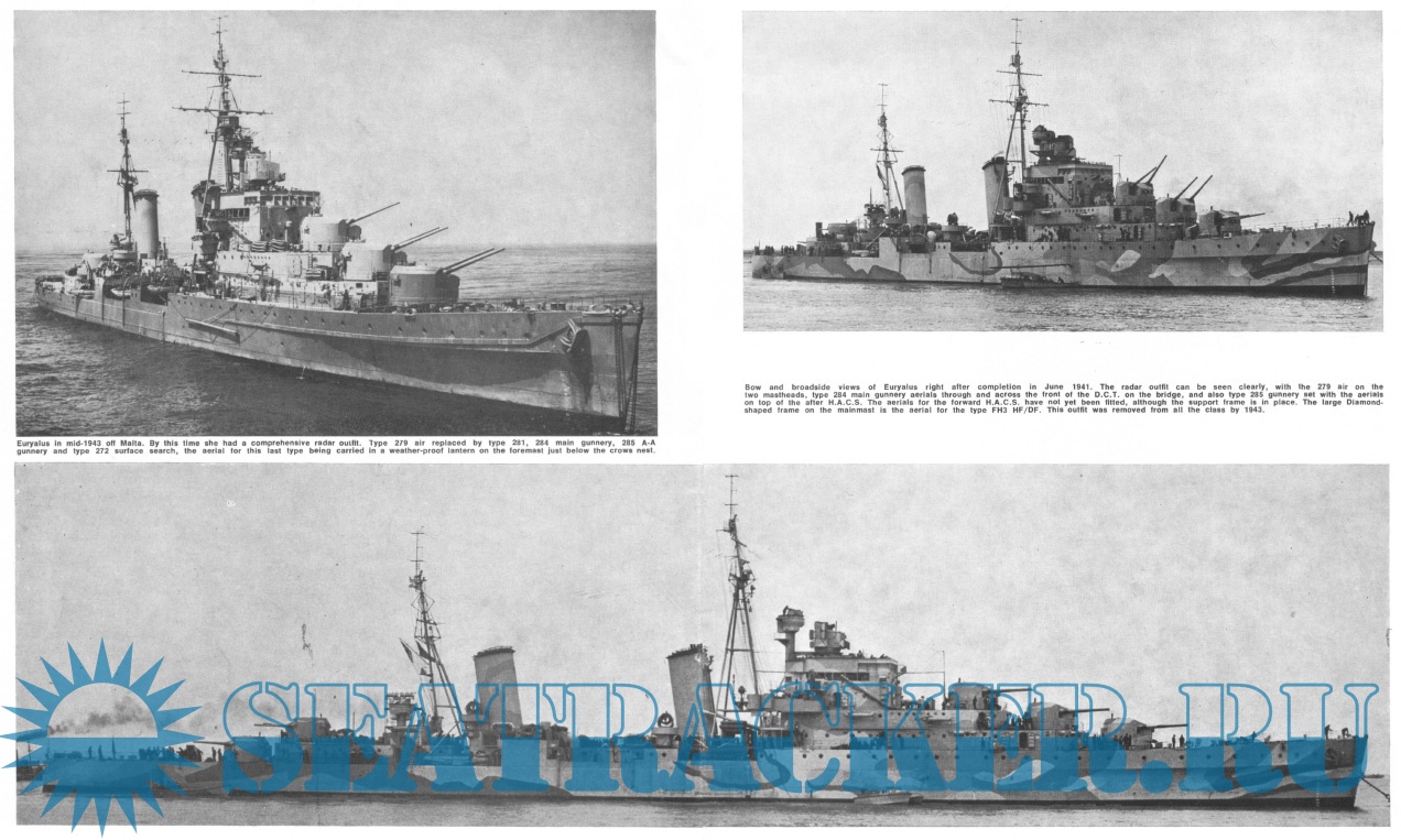Description: The Dido class consisted of sixteen light cruisers built for the Royal Navy during World War II. The first group of three ships were commissioned in 1940; the second group of six ships and third group of two were commissioned between 1941 and 1942. A fourth group, also described as the Improved Dido or Bellona class (five ships) were commissioned between 1943 and 1944. Most members of the class were given names drawn from classical history and legend. The groups differed in armament, and for the Bellonas, in function. The Dido class were designed to replace the C-class and D-class cruisers as small fleet cruisers and flotilla leaders for the destroyer screen. As designed, they mounted five twin 5.25-inch high-angle gun turrets on the centreline providing dual-purpose anti-air and anti-surface capacity; the complex new turrets were unreliable when introduced, and somewhat unsatisfactory at a time when the UK faced a fight for survival. During the war, the original 1939-42 ships required extensive refit work to increase electrical generating capacity for additional wartime systems (notably radar and gun direction equipment) and in the final Bellona, HMS Diadem, fully-electric turrets. While some damage was experienced initially in extreme North Atlantic weather, changes to gun handling and drill partially mitigated the problems. The fitting of the three forward turrets in the double-superfiring A-B-C arrangement (although in Royal Navy classification, fifth turrets were called "Q", not "C") relied upon the heavy use of aluminium in the ships' superstructure, and the lack of aluminium after the evacuation of the British Army from France was one of the primary reasons for the first group only receiving four turrets, while the third group received four twin 4.5-inch mounts and no 5.25-inch guns at all. The Bellonas were designed from the start with four radar-directed 5.25-inch gun turrets with full Remote Power Control and an expanded light anti-aircraft battery, substantially increasing their efficiency as AA platforms.