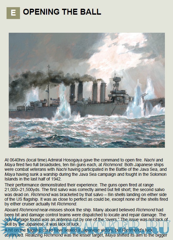 Exploring the warships, the battle, and why it was won, naval expert Mark Lardas explains that due to an intelligence failure, the Japanese escort was twice the size expected, with the US outnumbered 2:1 in heavy and light cruisers. Although both sides had the same number of destroyers (four each) the Japanese destroyers were newer and more powerful than their US counterparts.