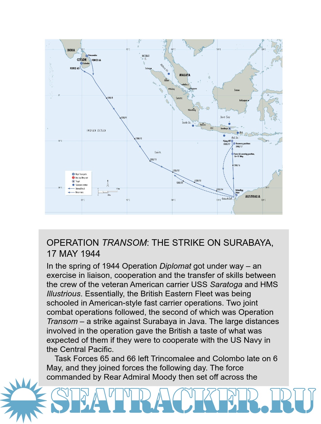 Description: By the spring of 1944 the British Eastern Fleet had spent the best part of two years keeping out of trouble. Having barely weathered the Japanese raids into the Indian Ocean in 1942, it needed time to recover and to rebuild. Put simply, it lacked the strength to make a difference in the war raging in the Pacific. However, it couldn’t be expanded before victory in the naval campaigns in the North Atlantic and the Mediterranean was assured. By early 1944 though, reinforcements began to arrive from home. These included the vital aircraft carriers, battleships and cruisers which the Eastern Fleet needed to finally go over onto the offensive. Eventually the bulk of Britain’s carrier strike force were transferred to the Indian Ocean, so Somerville was able to plan operations which could make a real difference in the Pacific War. Eventually the fleet grew into the largest and most powerful naval strike force that Britain had ever assembled.