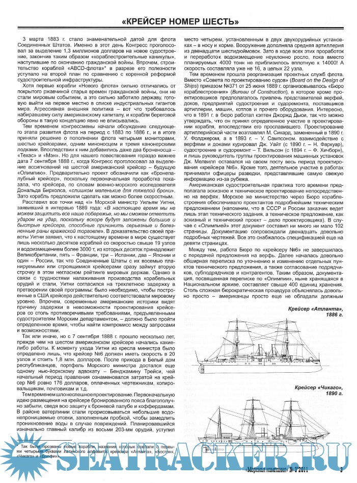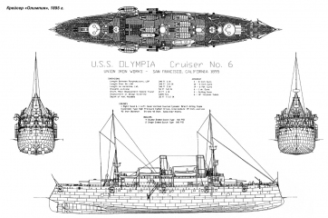 Описание: Настоящий выпуск посвящен одному из самых знаменитых кораблей - американскому бронепалубному крейсеру «Олимпия». Созданный в конце XIX века, он сохраняется до настоящего времени, являясь одним из немногих, дошедших до нас, свидетелей далекой эпохи. «Олимпия» была флагманским кораблем адмирала Дьюи во время сражения в Манильской бухте (другое название - сражение при Кавите), ознаменовавшим начало новой эры для американского флота, принимала участие в Первой мировой войне и даже отметилась своим присутствием на Русском Севере в ходе иностранной интервенции против молодой Советской республики.