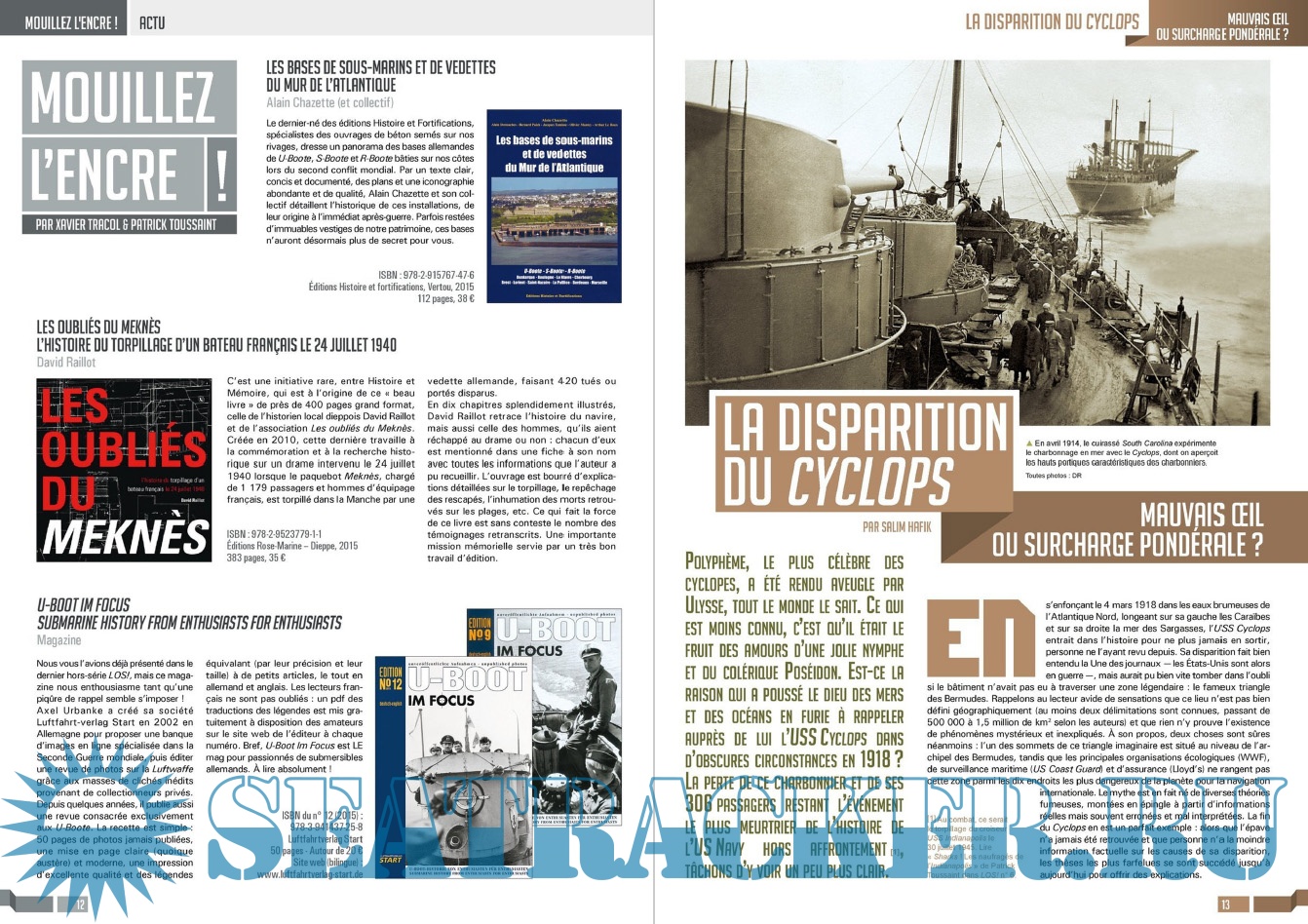 Description: LES ÉDITIONS CARAKTÈRE PRENNENT LE LARGE EN LANÇANT UN NOUVEAU MAGAZINE CONSACRÉ À LA GUERRE NAVALE !Les sujets passionnants ne manquent pas et LOS ! met un point d’honneur à les présenter au lecteur comme cela n’a jamais été fait dans la presse française jusqu’à présent. Un seul mot d’ordre pour l’équipe rédactionnelle : rigueur scientifique et présentation ludique !S’appuyant sur un fond photographique d’exception, sur des plans de bateaux et d’avions, les éditions Caraktère innovent une fois de plus en vous proposant aussi des vues 3D détaillées, le tout au service de textes soigneusement rédigés par des auteurs spécialisés. Vous comprendrez ainsi comment fonctionne un submersible, comment se déroule un combat naval, comment est conçu un cuirassé ou comment attaquent les avions-torpilleurs !Revivez au fil des pages l’aventure humaine exceptionnelle des matelots de la marine marchande affrontant les U-Boote en Arctique, ou celle des pilotes embarqués sur les porte-avions américains et japonais. Lisez les exploits des hommes-grenouilles italiens en Méditerranée, des équipages des vedettes lance-torpilles dans la Manche, des sous-marins soviétiques de la guerre froide ou des grands cuirassés de 1914-18