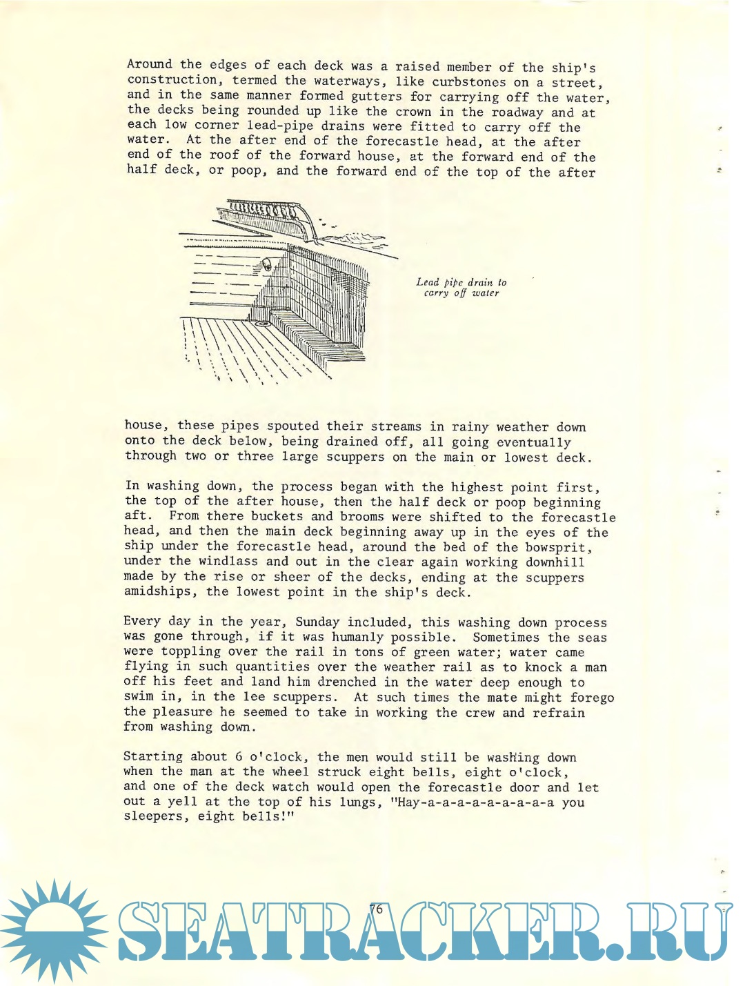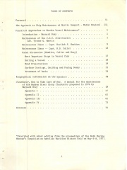 Year: 1978 Language: English Author: Bray M. Genre: Manual Publisher: Maine Of Sea Grant Format: PDF Quality: eBook Pages count: 87 Description: A book about a dying Art! Two papers and discussions are presented on the care of old and relatively new wooden ships. The first was taken with some editing from the proceedings of the Bath Marine Museum's Symposium on American Maritime History, held on May 6-8, 1977, and mainly concerns the maintenance of the U.S.S. Constitution. The second paper is a manual for the maintenance of the Hudson River Sloop Clearwater prepared in 1976 by Maynard Bray. Special care of wooden ships is a skill now limited to a few and efforts are being made to perpetuate these skills. Keywords: Ships Maintenance Wood Wood preservatives Coating processes Caulking Guidelines Constitution vessel Clearwater vessel Sea Grant program