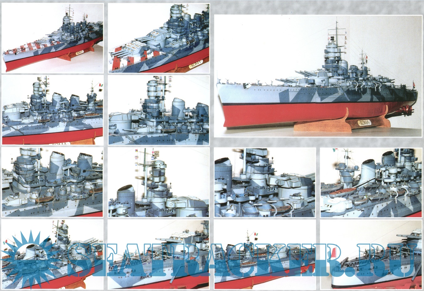 28 листов цветных выкроек и инструкций для изготовления бумажной модели итальянского линкора ''Roma'' в масштабе 1:200Скриншоты