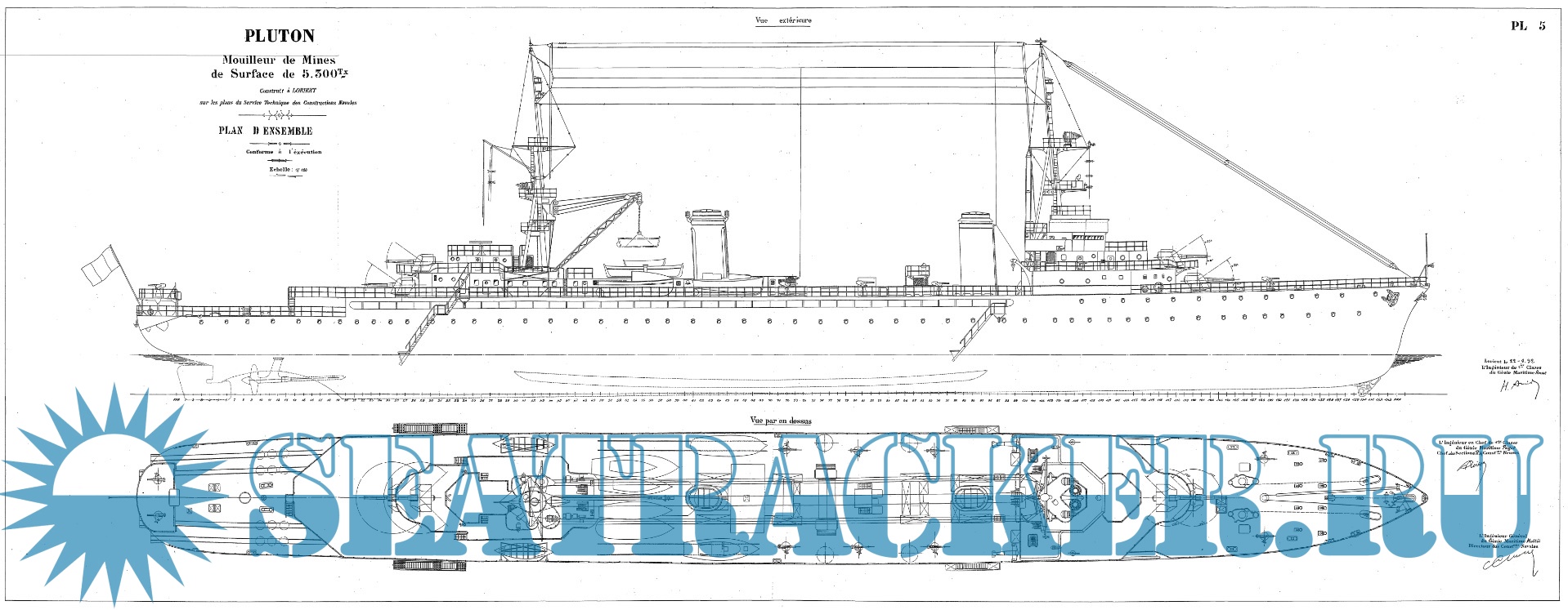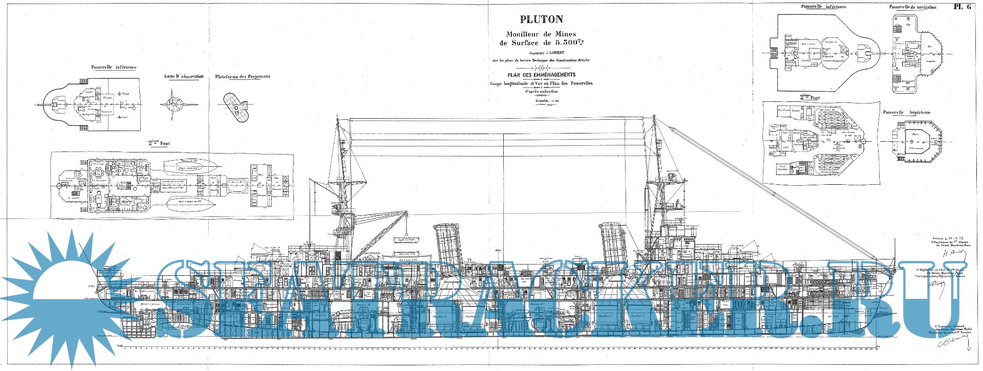 Архивные чертежи французского минного заградителя PLUTON 1929 год