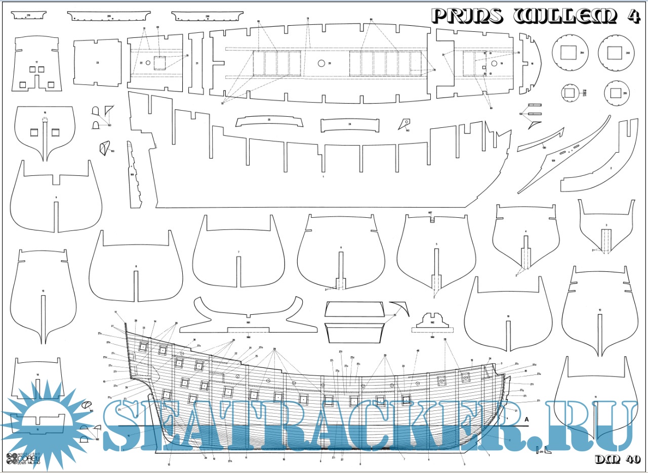Чертежи и руководство по изготовлению модели голландского парусного корабля Prins Willem 1651 год - CorelСкриншоты