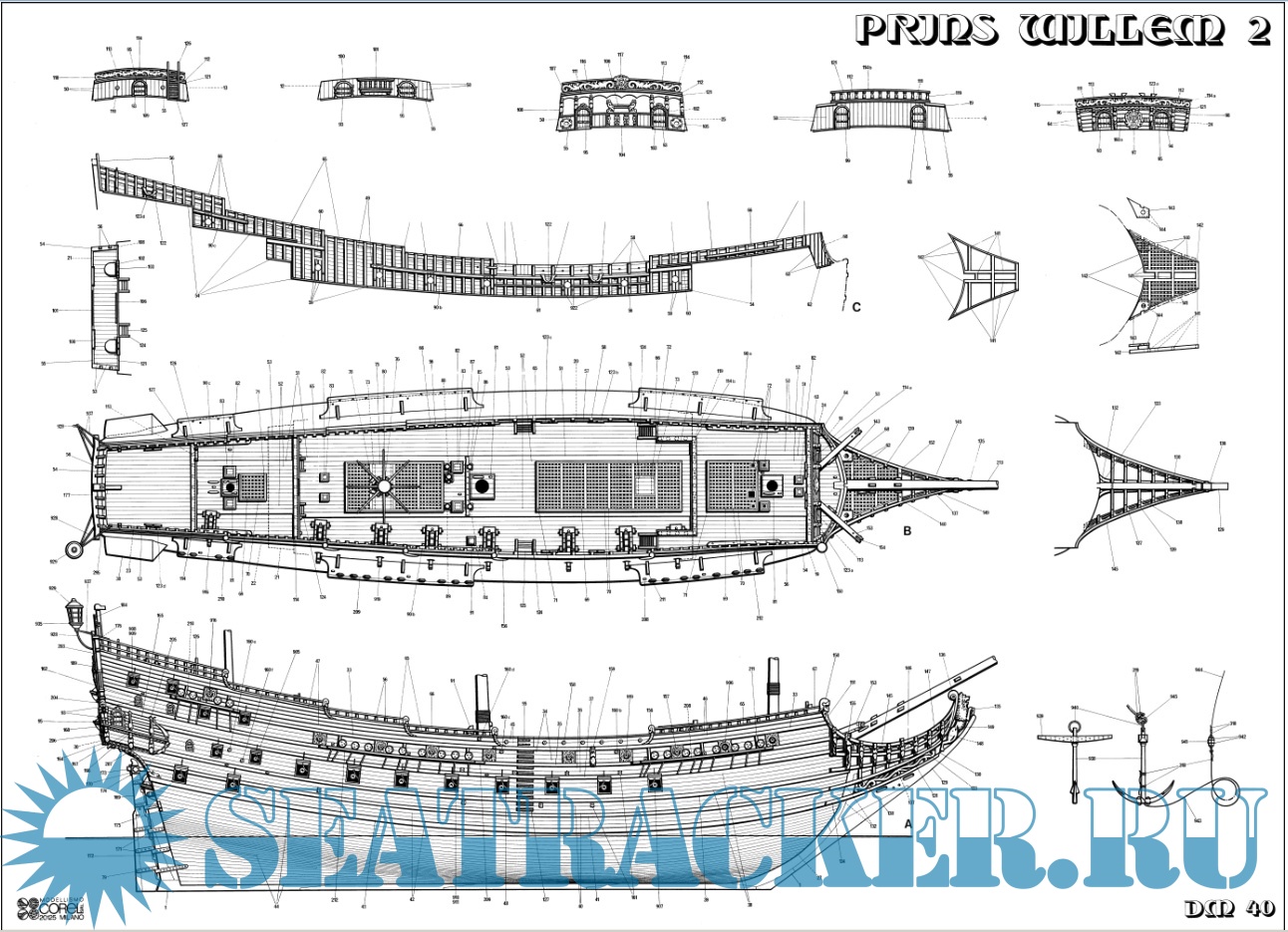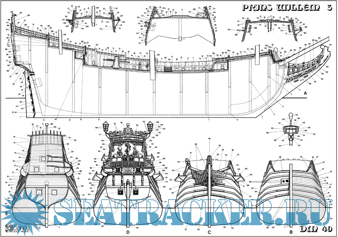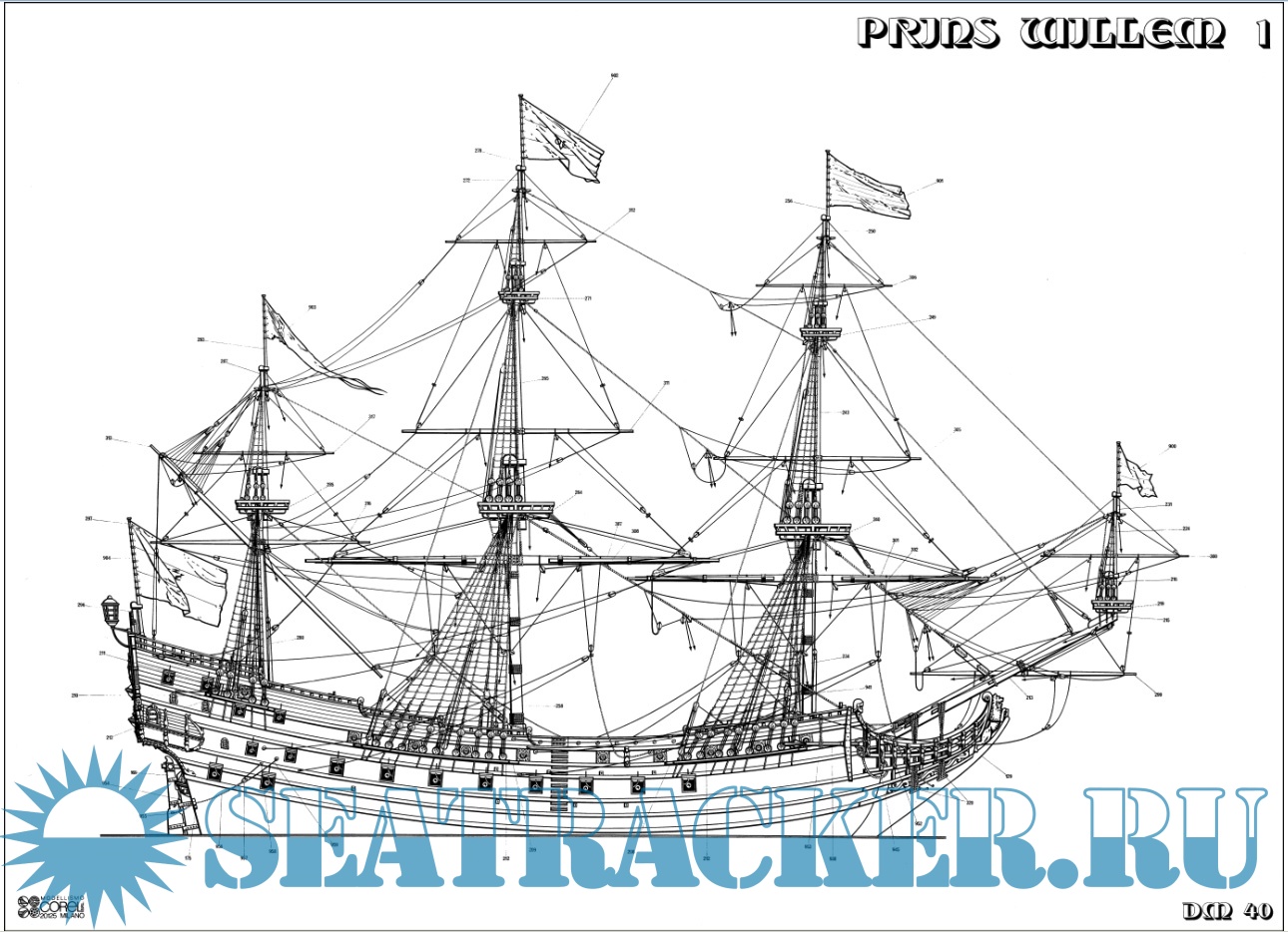 Чертежи и руководство по изготовлению модели голландского парусного корабля Prins Willem 1651 год - Corel