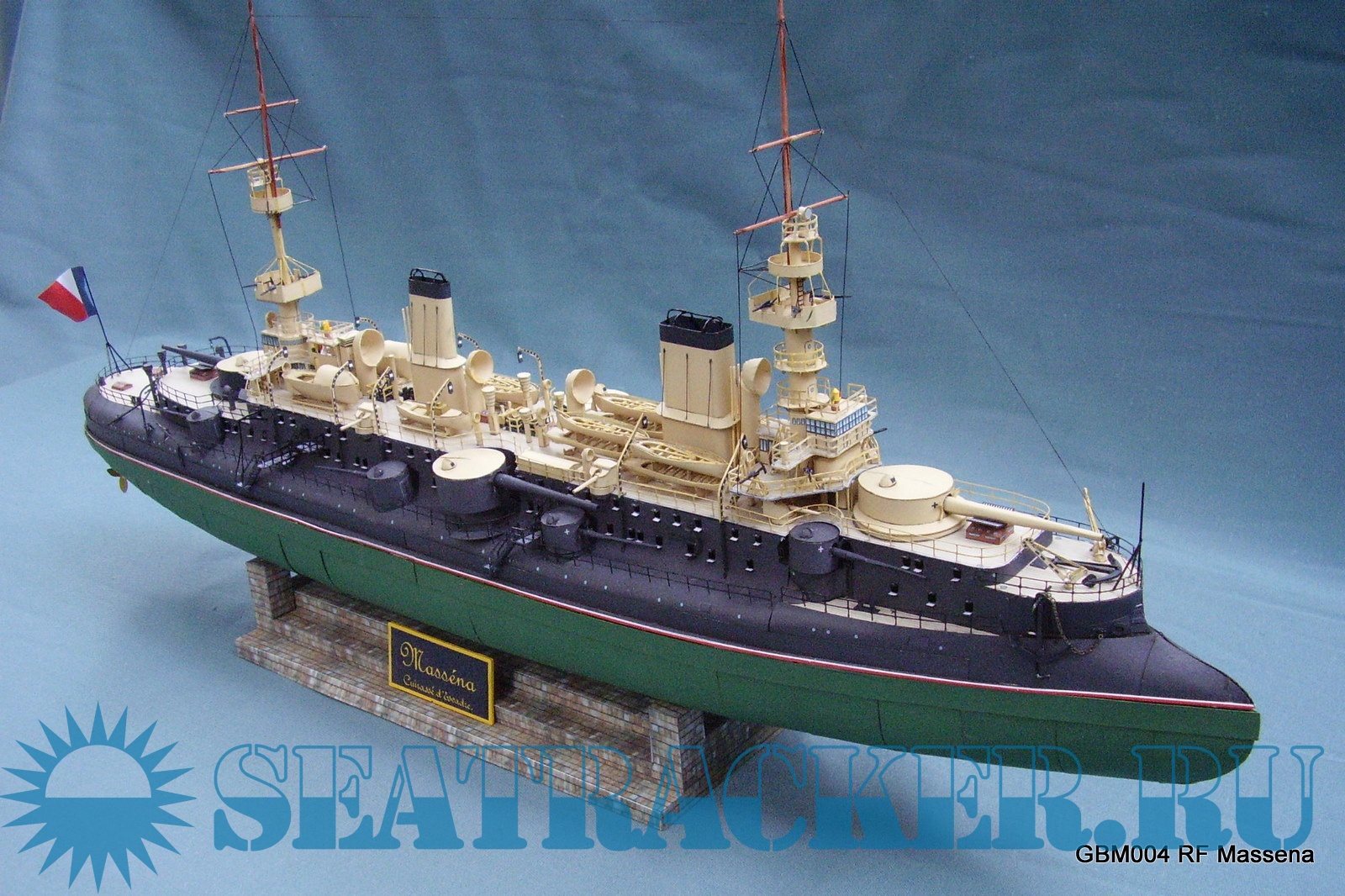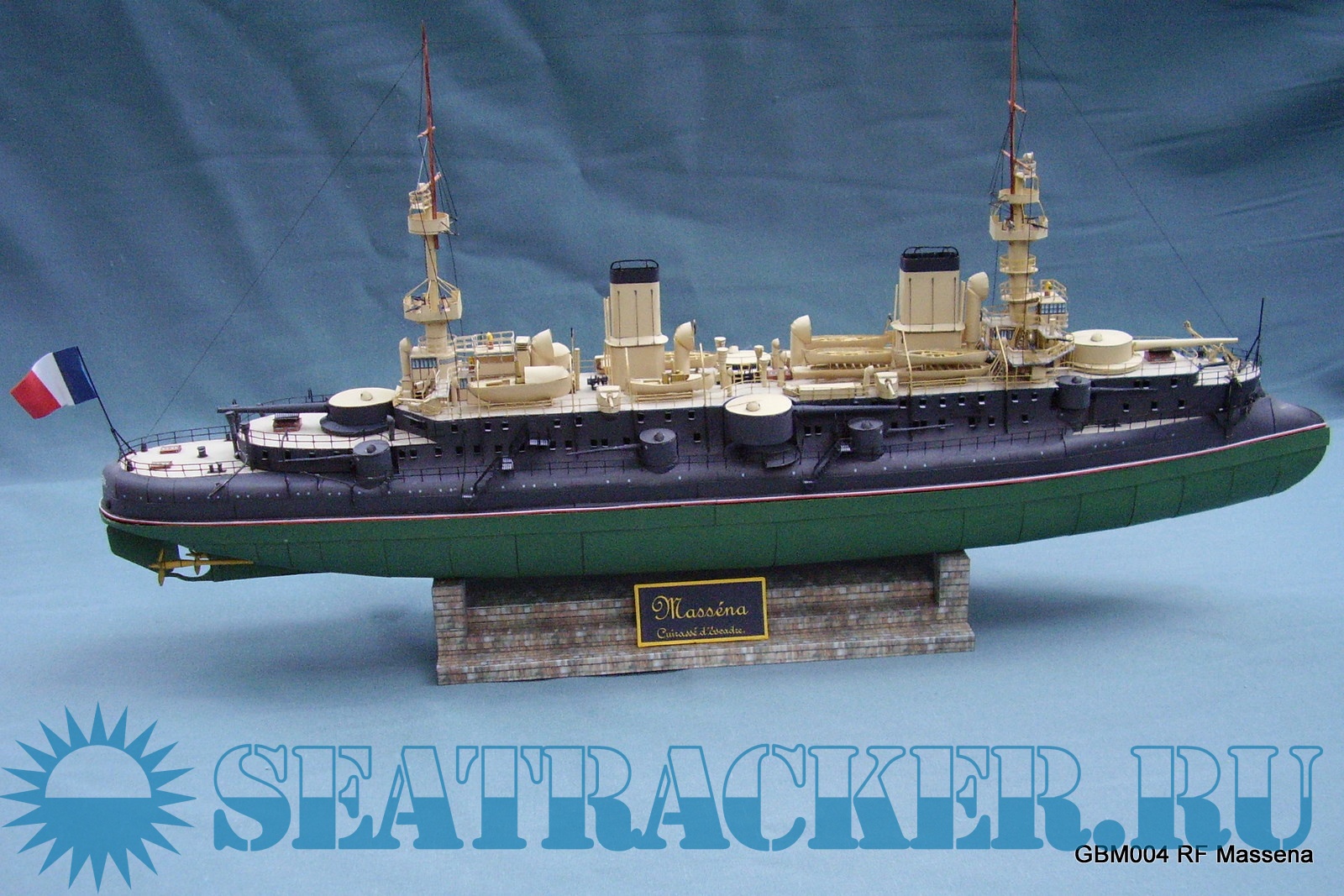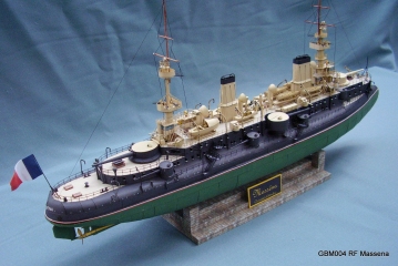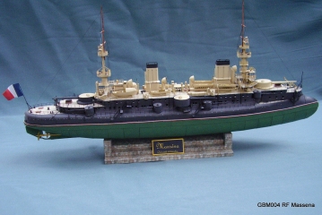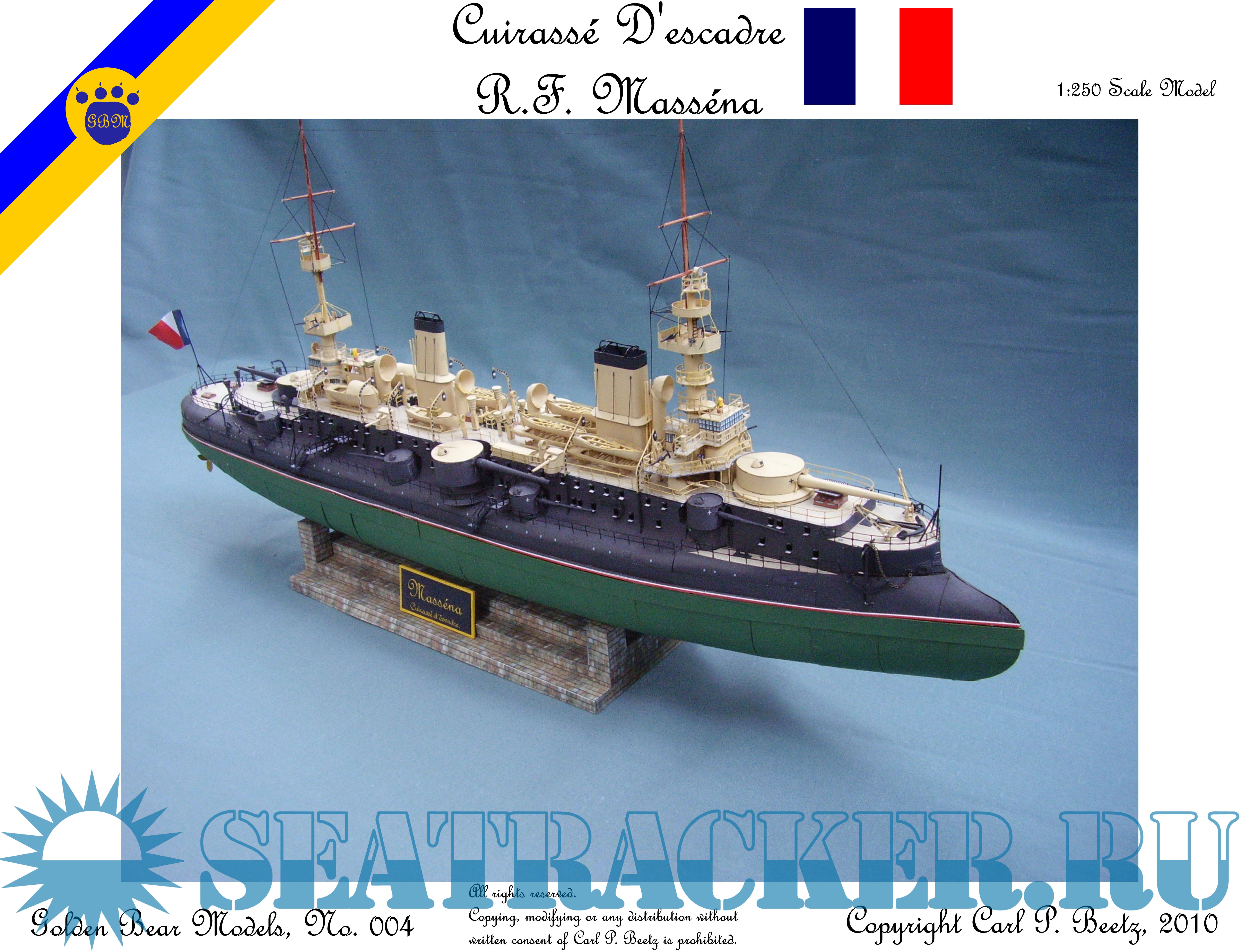 Описание: 48 листов цветных выкроек и инструкций для изготовления бумажной модели французского броненосца RF Massena 995 год в масштабе 1:250