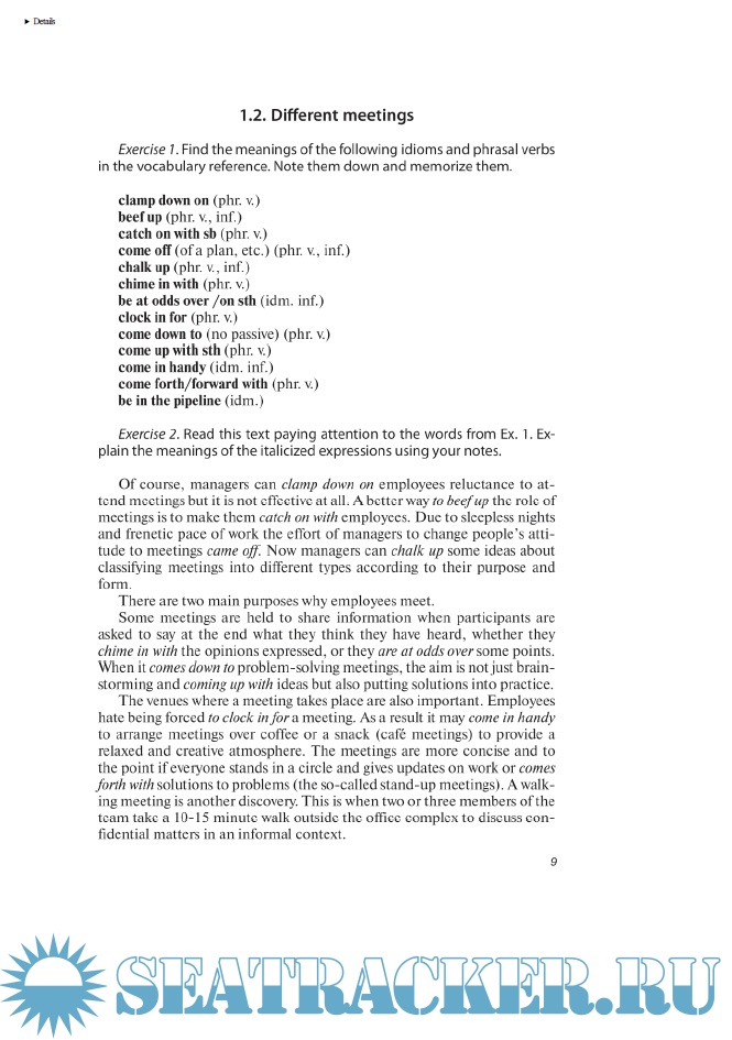 Описание: Учебное пособие закладывает основы понимания проблем делового общения, обогащает словарный запас студентов идиоматическими выражениями и фразовыми глаголами, формирует навык их узнавания и употребления в письменных текстах и разговорной практике, в деловых контекстах и в переводе. В пособии даны примеры применения идиом и фразовых глаголов в жанрах интервью, публичных выступлений, журнальных статьях, письмах к редактору и заголовках, а также в таких сферах деловой коммуникации, как собрания, презентации, переговоры, общение по телефону. Пособие также содержит большое количество упражнений на употребление идиом и фразовых глаголов в различных функциях: для организации информации в сообщении, передачи отношения говорящего к высказыванию, выражения эмоций и чувств деловых партнеров. В пособии имеются тесты для проверки усвоения идиоматических выражений и фразовых глаголов и справочный материал, включающий 325 идиоматических выражения, 142 фразовых глагола и 11 пословиц и поговорок.