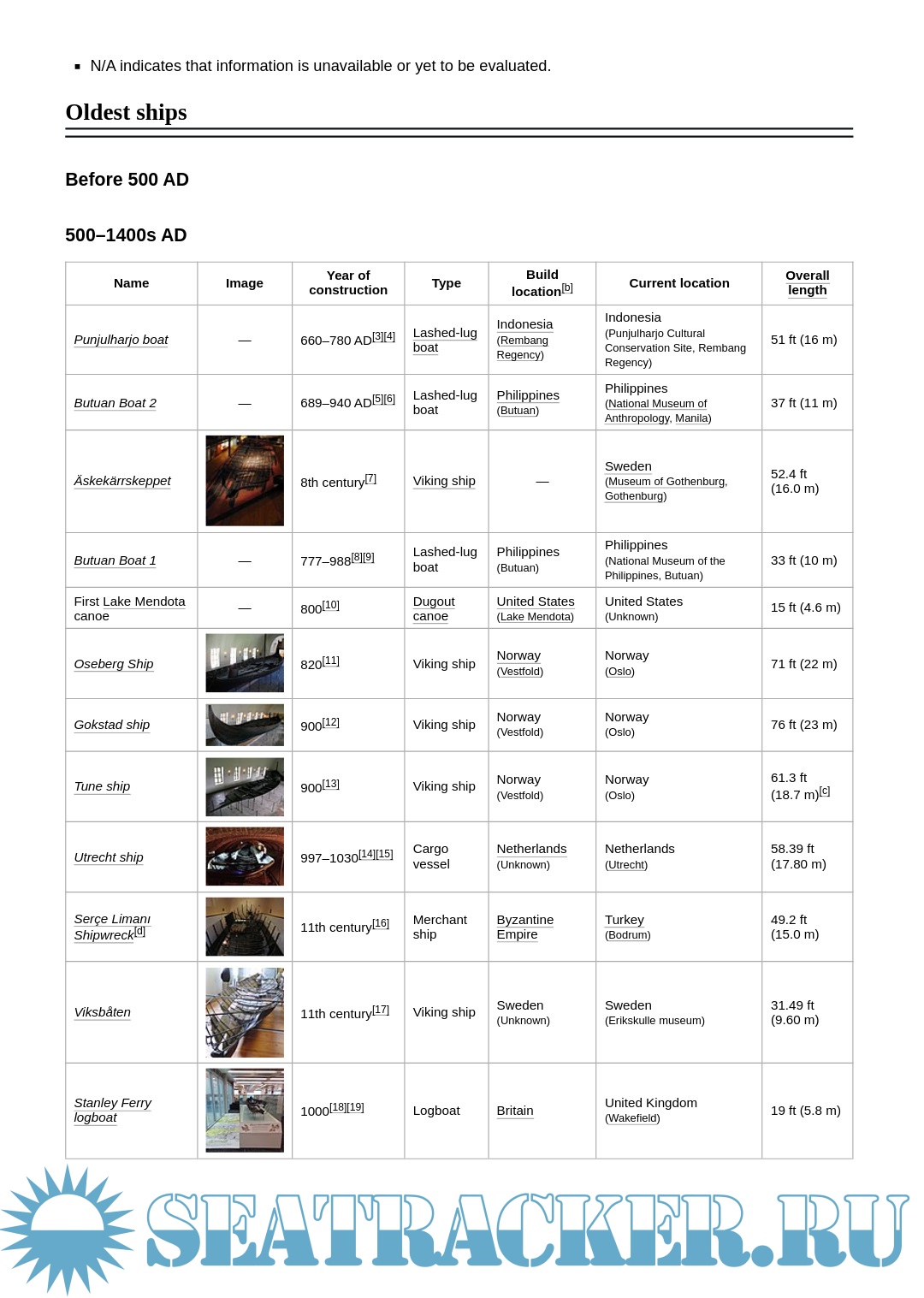 Description: This is a list of the oldest ships in the world which have survived to this day with exceptions to certain categories. The ships on the main list, which include warships, yachts, tall ships, and vessels recovered during archaeological excavations, all date to between 500 AD and 1918; earlier ships are covered in the list of surviving ancient ships. Vessels listed are sorted by date of launch as most accurately known. Many of the ships in the "Build location" column were built for use in other countries by the United Kingdom, which in the mid to late 1800s was a dominant worldwide ship builder. A majority of ships on this list are found in museums, and it includes examples that are the last of their kind left in the world.