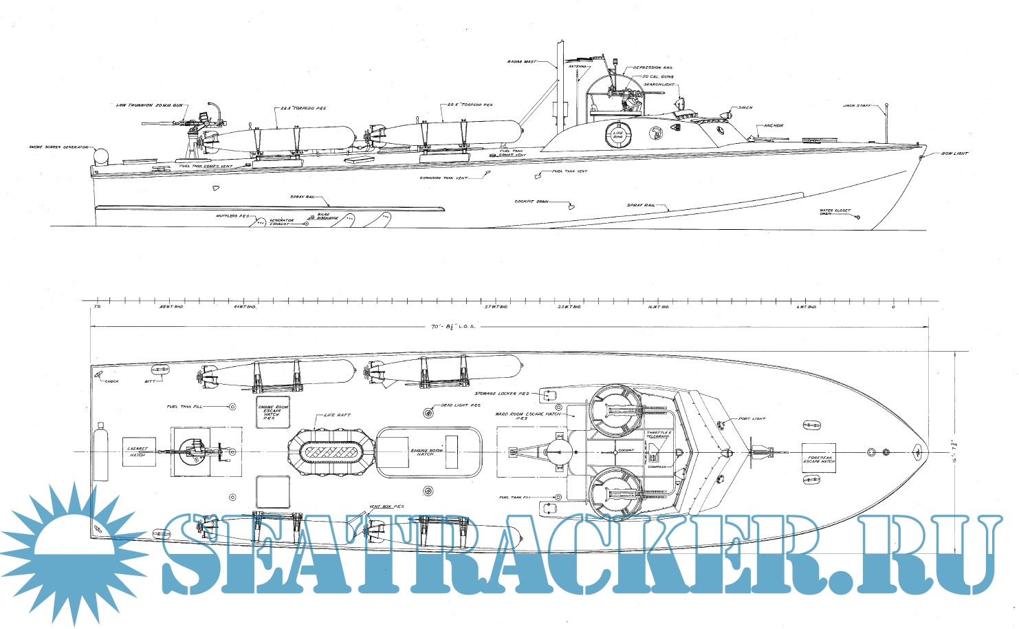Архивные чертежи торпедных катеров PT-564, 76' M.T.B., PT-5, PT-6 1941 год (США)