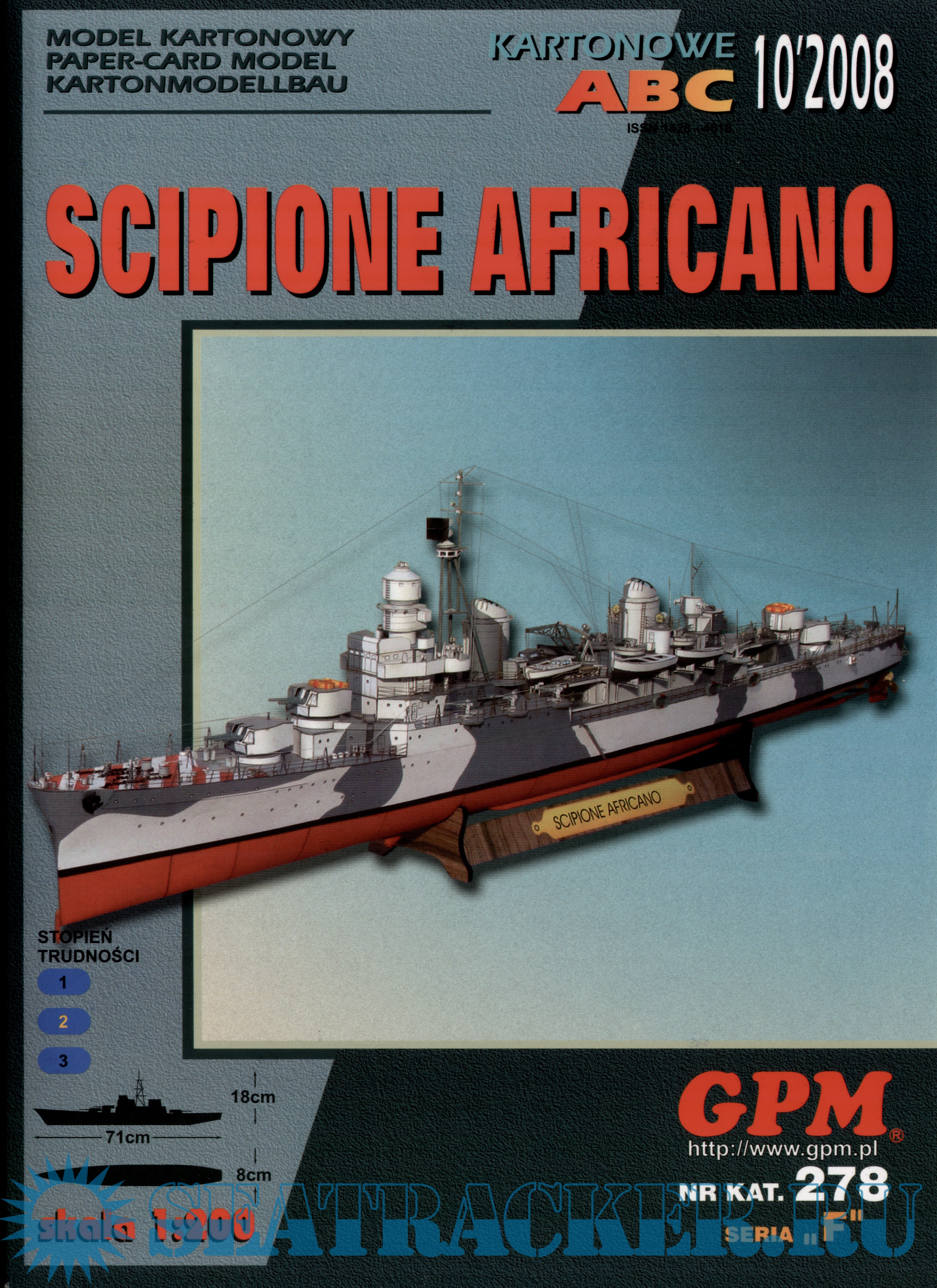 Описание: 29 листов цветных выкроек и инструкций для изготовления бумажной модели французского лёгкого крейсера Scipione Africanoв масштабе 1:200