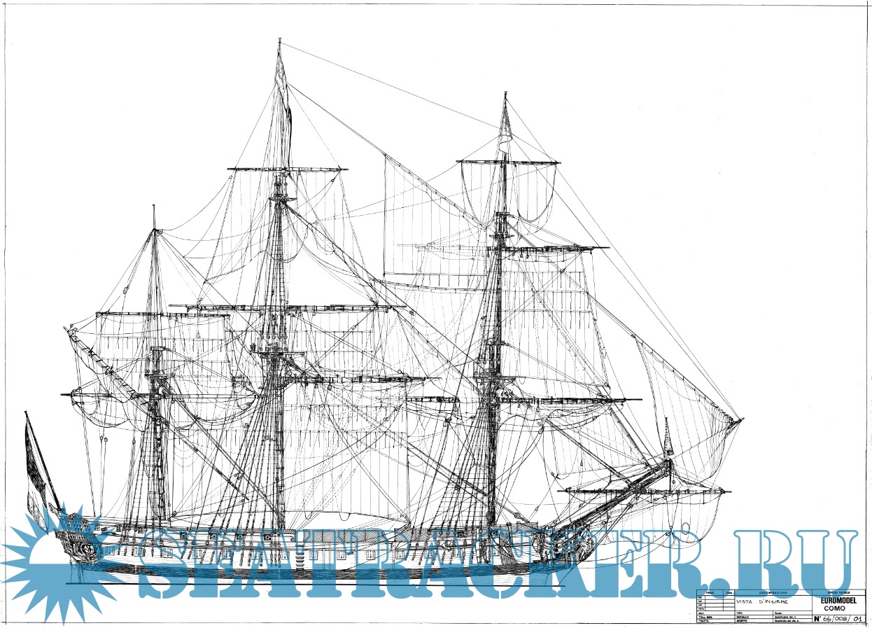 Чертежи и руководство по изготовлению модели французского фрегата La Renommee 1744 год (Euromodel)