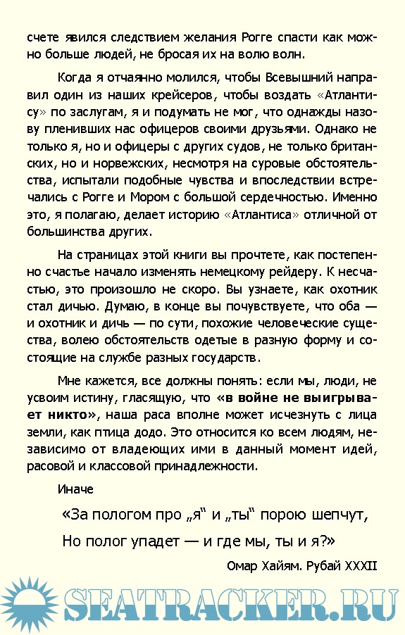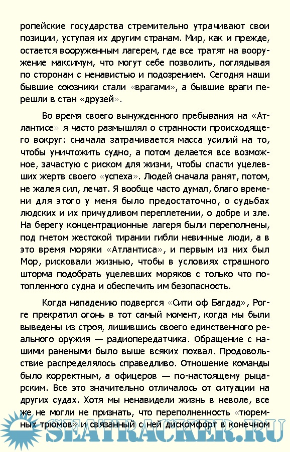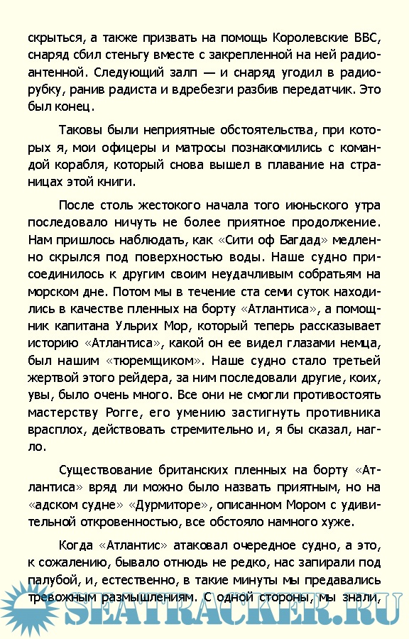 Описание: В этой книге повествуется об "Атлантисе"-самом успешном корабле нацистской Германии, который терроризировал торговое судоходство союзников в Индийском и Атлантическом океанах. За более чем шестьсот дней, проведенных в морях, Им было потоплено двадцать одно судно противника. В книге удивительно ярко рассказывается о его "перевоплощениях", искусной маскировке и маневренности.