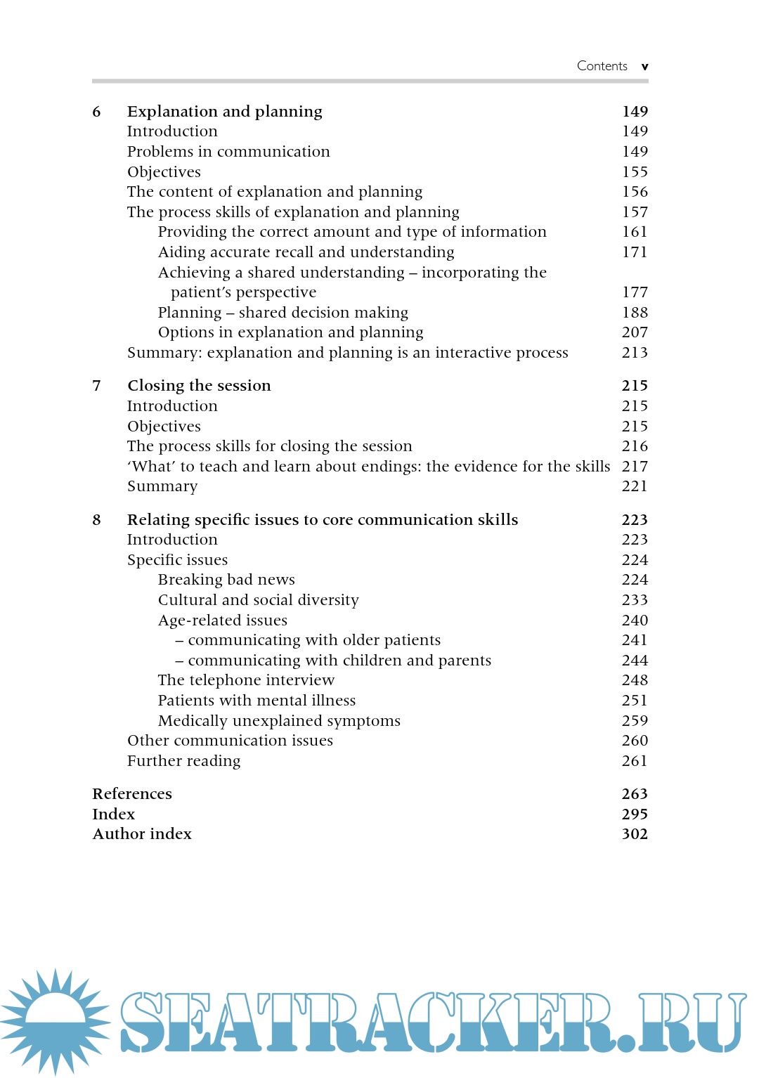Year: 2016 Language: English Author: Silverman J., Kurtz S., Draper J. Genre: Manual Publisher: CRC Press ISBN: 978-1-84619-365-1 Format: PDF Quality: eBook Pages count: 317 Description: Skills for Communicating with Patients, Third Edition is one of two companion books on improving communication in medicine, which together provide a comprehensive approach to teaching and learning communication skills throughout all levels of medical education in both specialist and family medicine. Since their publication, the first edition of this book and its companion, Teaching and Learning Communication Skills in Medicine, have become established standard texts in communication skills teaching throughout the world. This substantially expanded third edition has been fully updated in relation to the current literature and revised to reflect the explosion of research on healthcare communication. It incorporates considerable evidence in support of the skills of the Calgary-Cambridge Guides, offering a comprehensive and now even more evidence-based delineation of the skills that make a difference when communicating with patients. The book explores the specific skills of doctor-patient communication and provides wide-ranging evidence of the improvement that those skills can make to health outcomes and everyday clinical practice. It is unique in providing a secure platform of core skills which represent the foundations of doctor-patient communication.