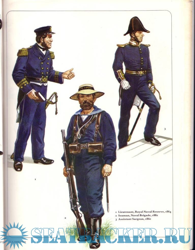 Year: 1977 Language: English Author: Robert Wilkinson-Latham Genre: Historical Publisher: Osprey Publishing Edition: Men at Arms Series, 65 Format: JPEG Quality: Scanned pages Pages count: 47 Description: Of all the world's seaborne military organizations, the British Royal Navy is perhaps the most prestigious. Protector of the British Empire and defender of British freedom, it has provided the template on which nearly all other national navies have modelled themselves. This book explores the changes in the uniforms of the Royal Navy from the 18th Century to 1970. It includes details from the dress regulations as laid down in the first official illustrated text on the topic, which dated from 1825, up through the present day, and addresses all variations for climate, rank, and equipment requirements.