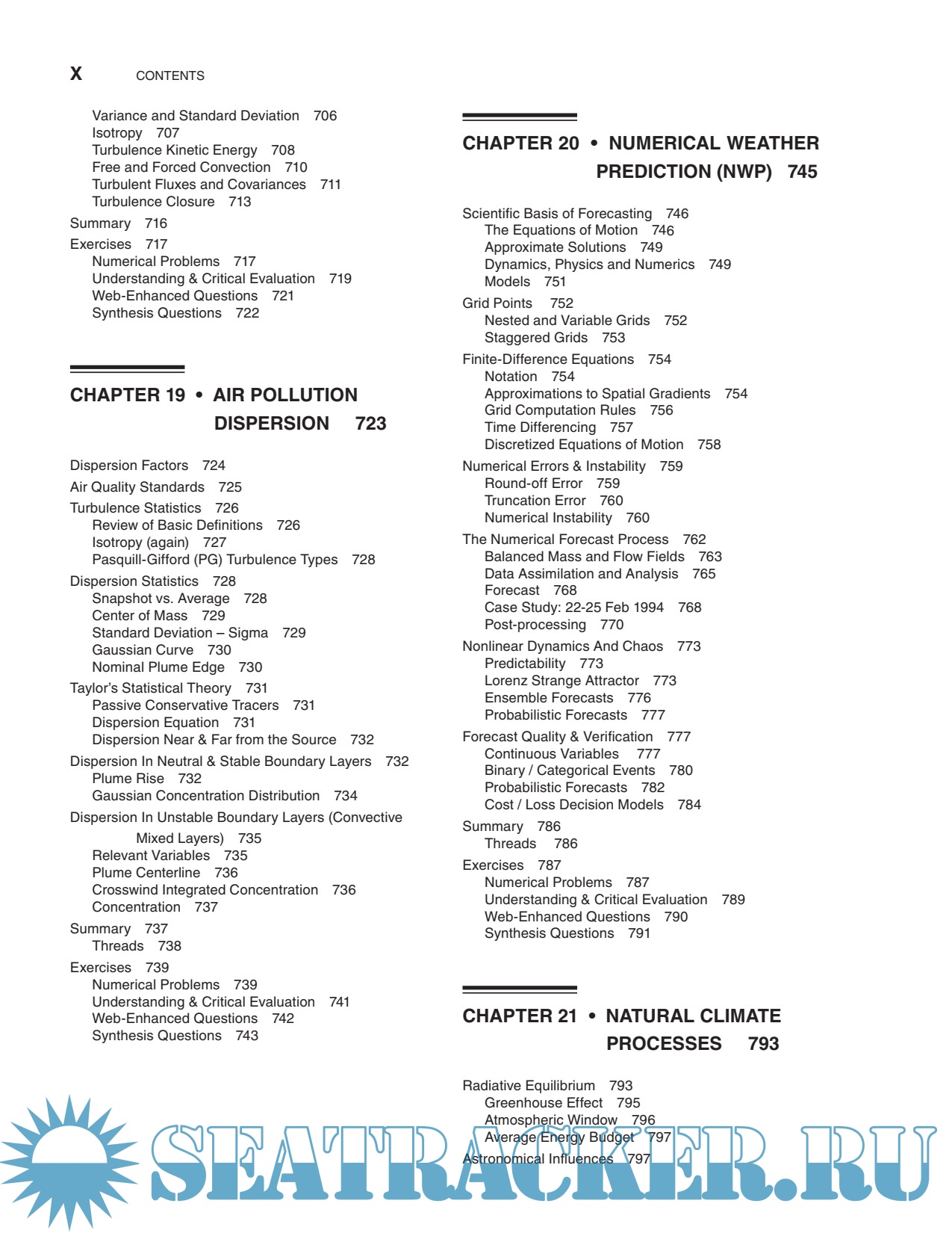 No previous knowledge of meteorology is needed — the author starts from the basics. Your background should include algebra, trig, and classical physics. This book could serve the fields of Atmospheric Science, Meteorology, Environmental Science, Engineering, Air Quality, Climatology, and Geography.