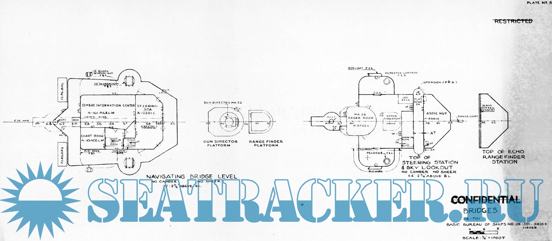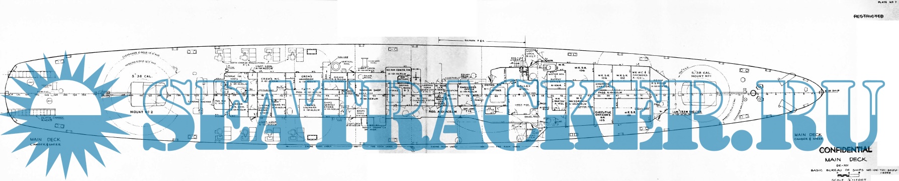 Архивные чертежи эсминца США DE-701 - USS Osmus (тип « Buckley») по состоянию на 1958 год