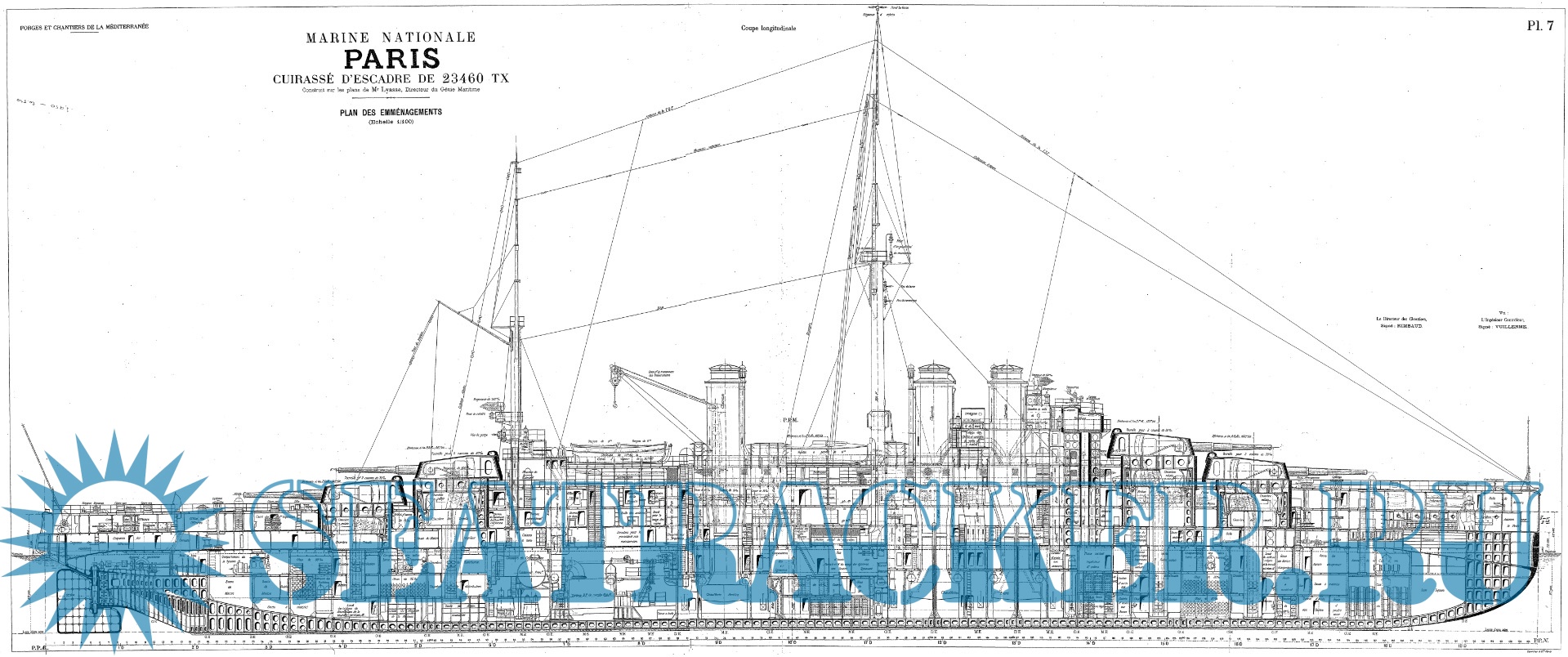 34 листа архивных чертежей французского линкора PARIS 1912 год