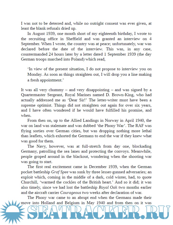 Description: A remarkable read, detailed, hour-to-hour and 'immediate' account of action, a personal but modest story, and the author and shipmates of all ranks come to life. There are excellent accounts of training, action-stations, gunnery, tactics ad strategy, officer- and ratings- relationships, and leadership, and all told in objective and authentic, and readable language.