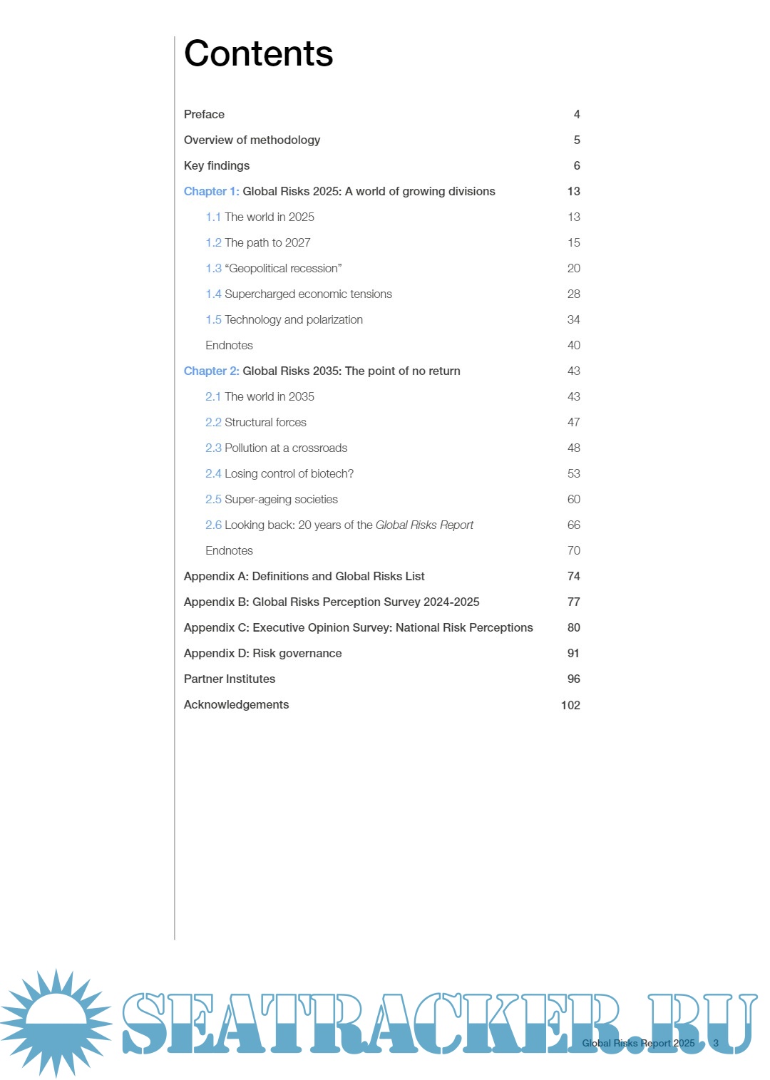 Description: The 20th edition of the Global Risks Report 2025 reveals an increasingly fractured global landscape, where escalating geopolitical, environmental, societal and technological challenges threaten stability and progress. This edition presents the findings of the Global Risks Perception Survey 2024-2025 (GRPS), which captures insights from over 900 experts worldwide. The report analyses global risks through three timeframes to support decision- makers in balancing current crises and longer-term priorities.