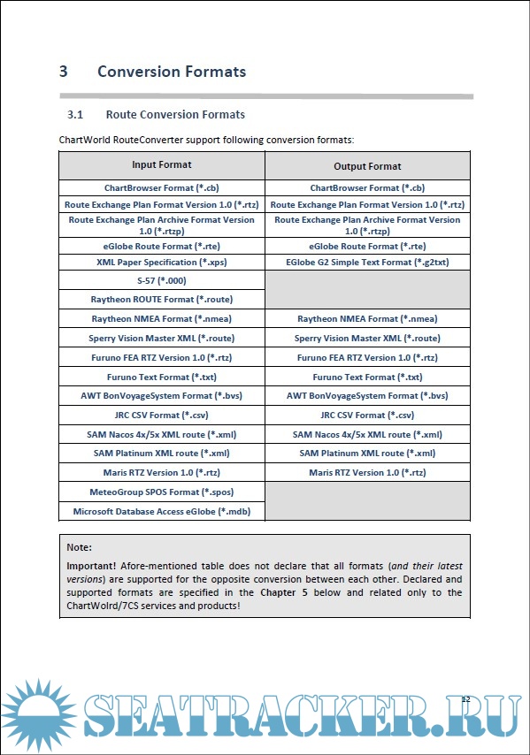 Description: Route Converter utility is used to exchange the Route (Voyage Plan) files between different ChartWorld solutions (eGlobe G2 ECDIS, MyRA) and external 3rd party onboard and onshore systems in the different formats.