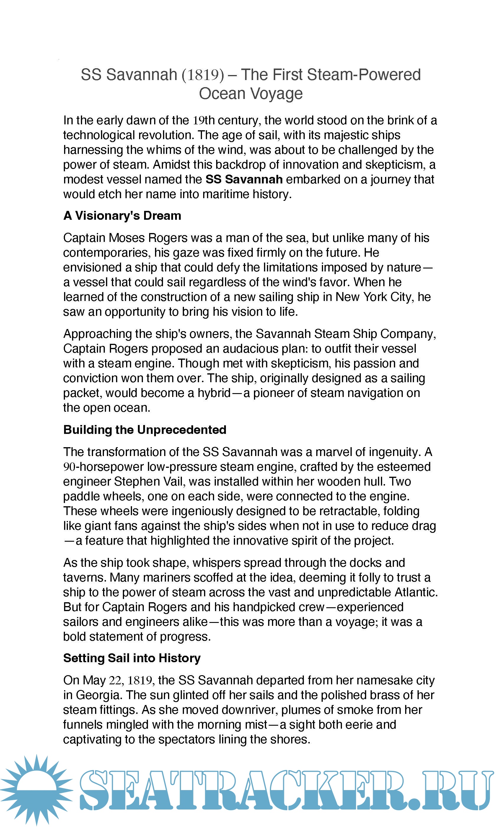 - SS Savannah (1819) – The first steam-powered ocean voyage that changed sea travel forever.