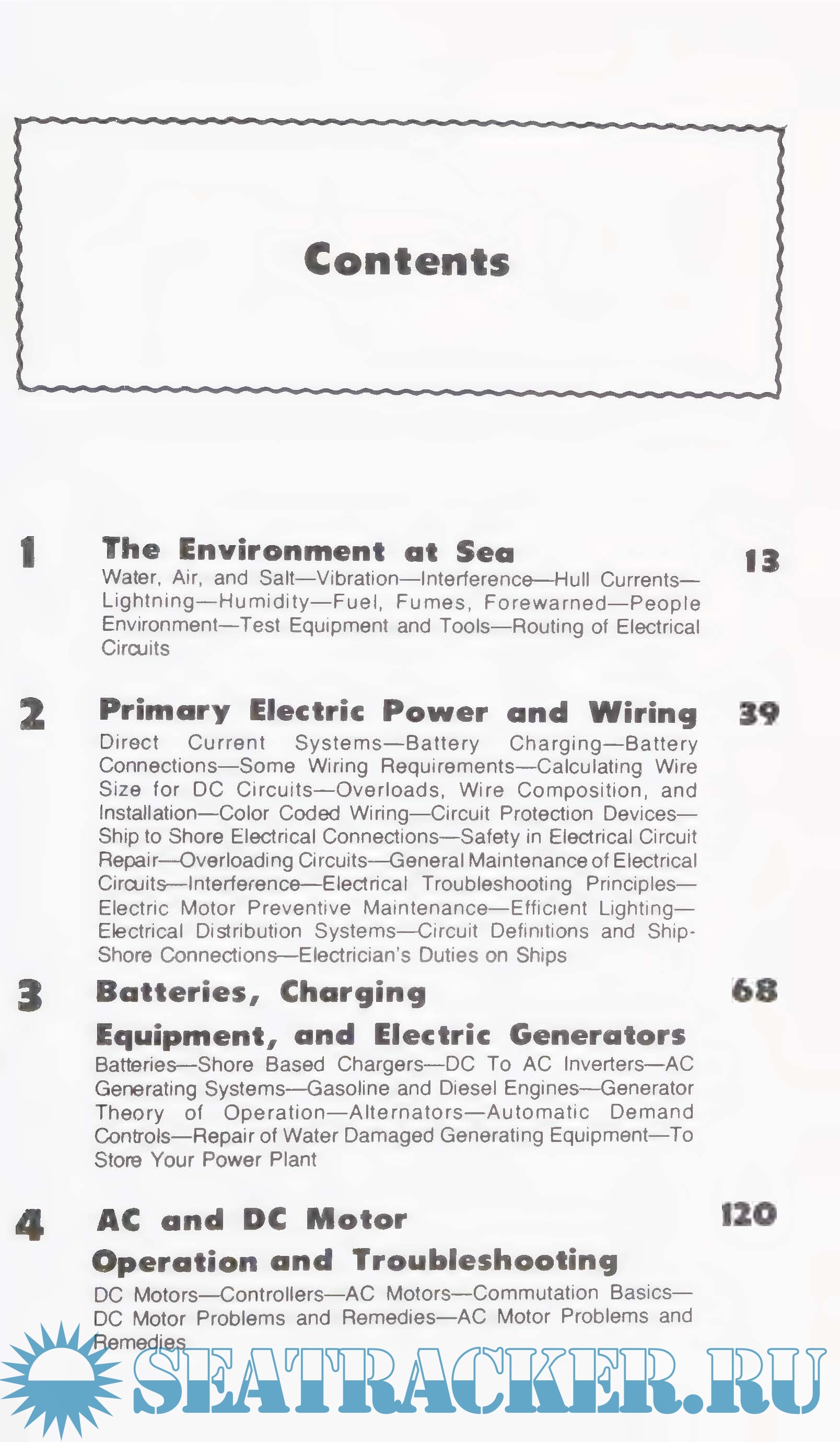 The book then progresses and considers electrical devices for safety, pleasure, and comfort; then, into the various electronic devices which provide navigation, communications, soundings. and movement of and for the boats in a marina. in the harbor, or at sea.