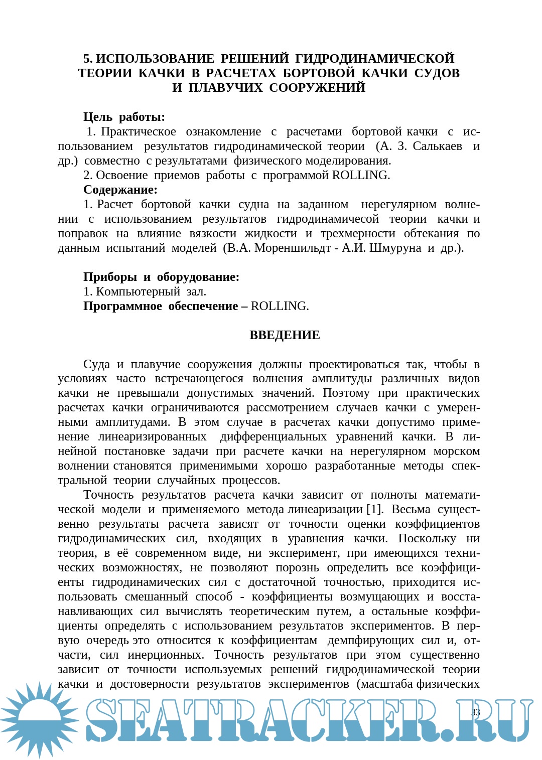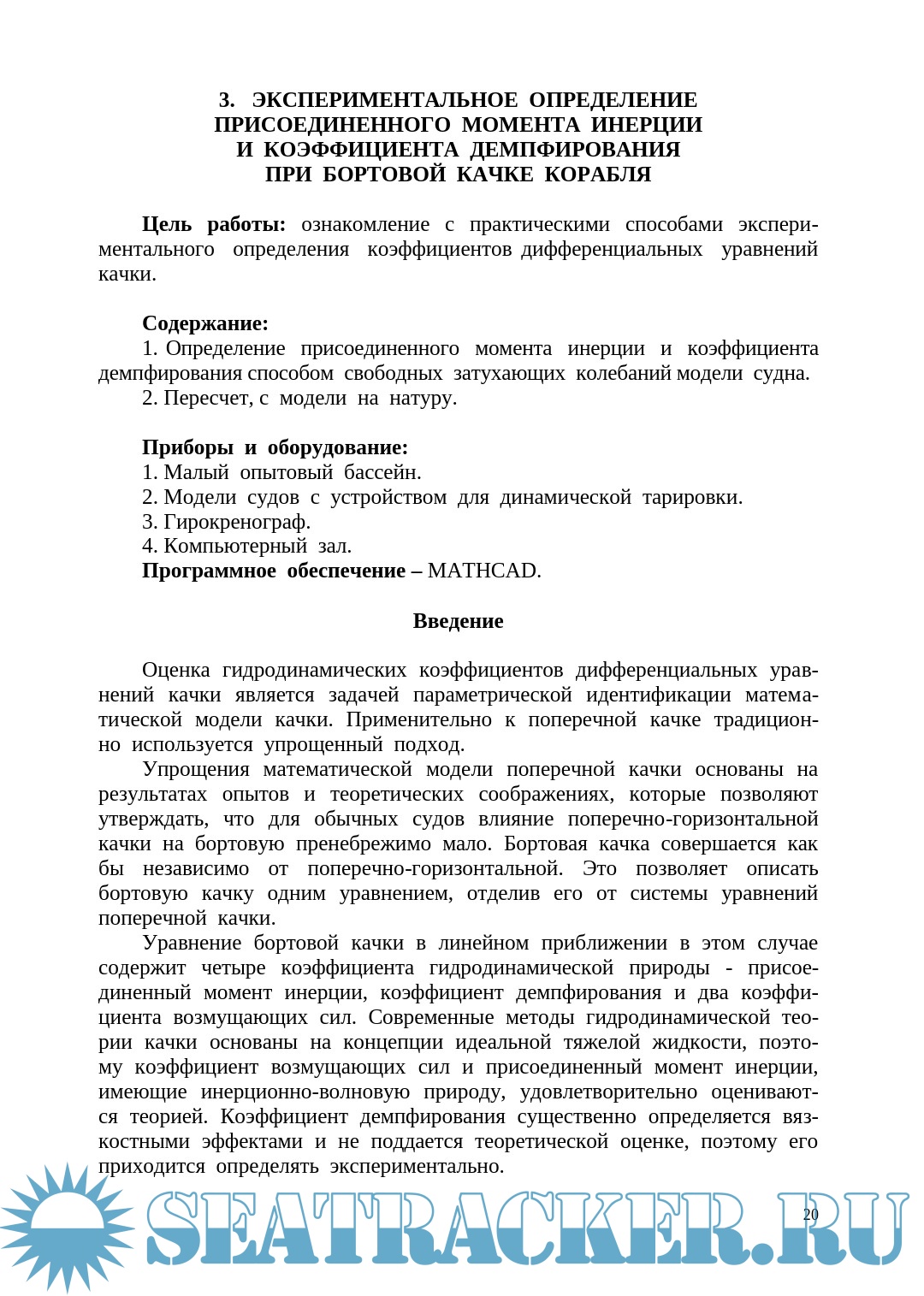 Описание: Целью учебно-методического пособия является оказание помощи студентам в выполнении лабораторных занятий по дисциплине «Теория корабля. Качка судов».