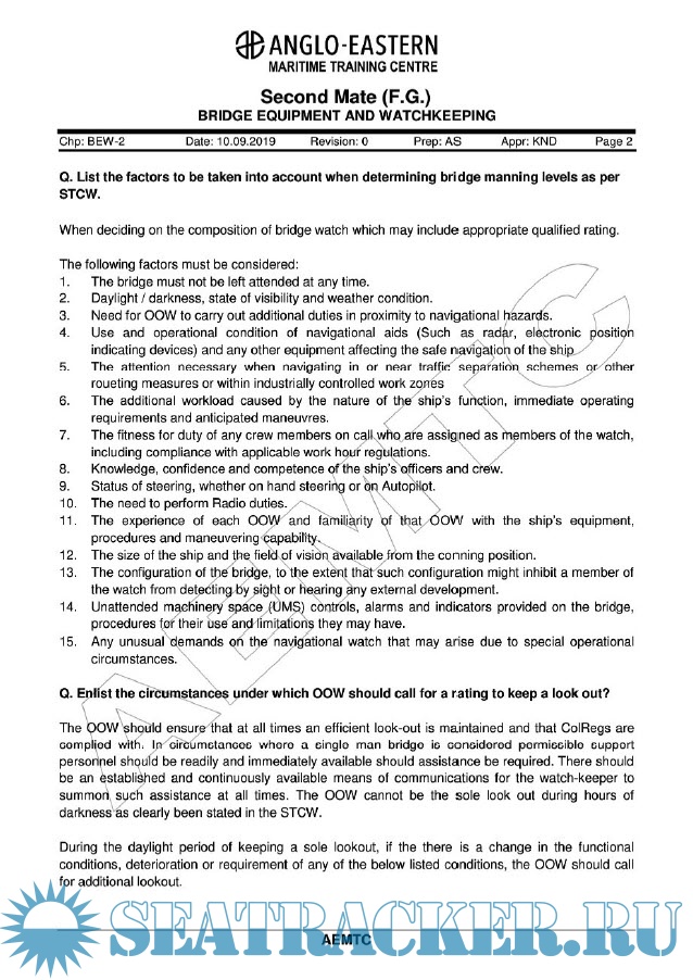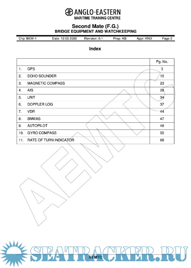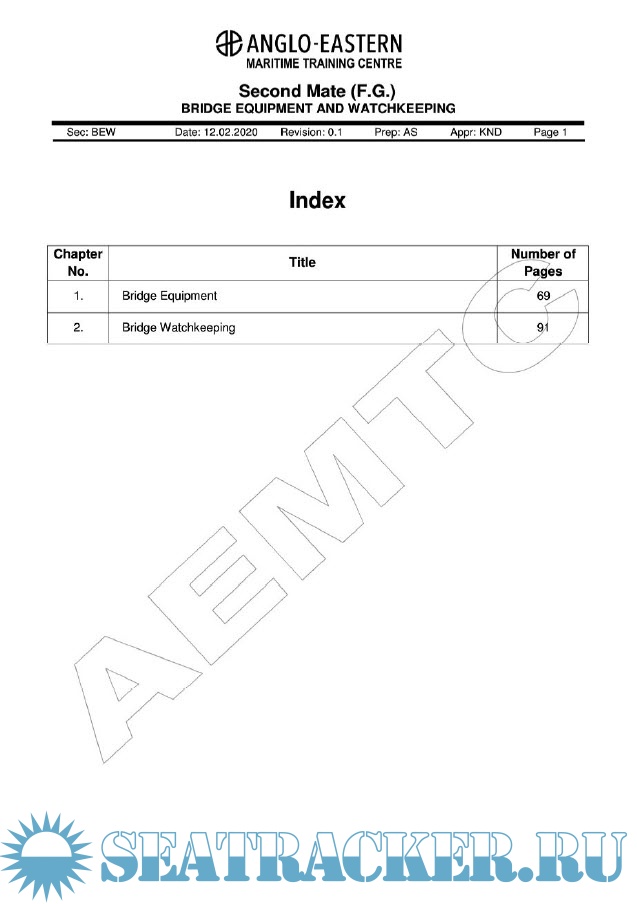 Description: Reference Material for Bridge Equipment and Watchkeeping for Second Mates (FG) Course.