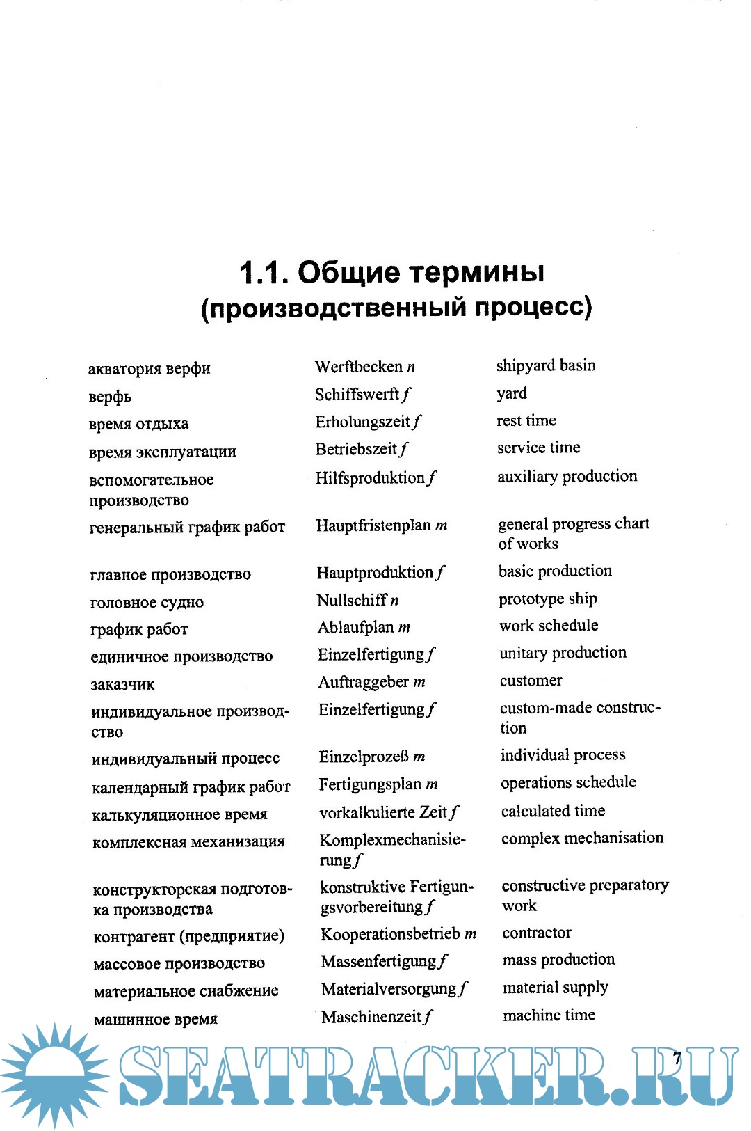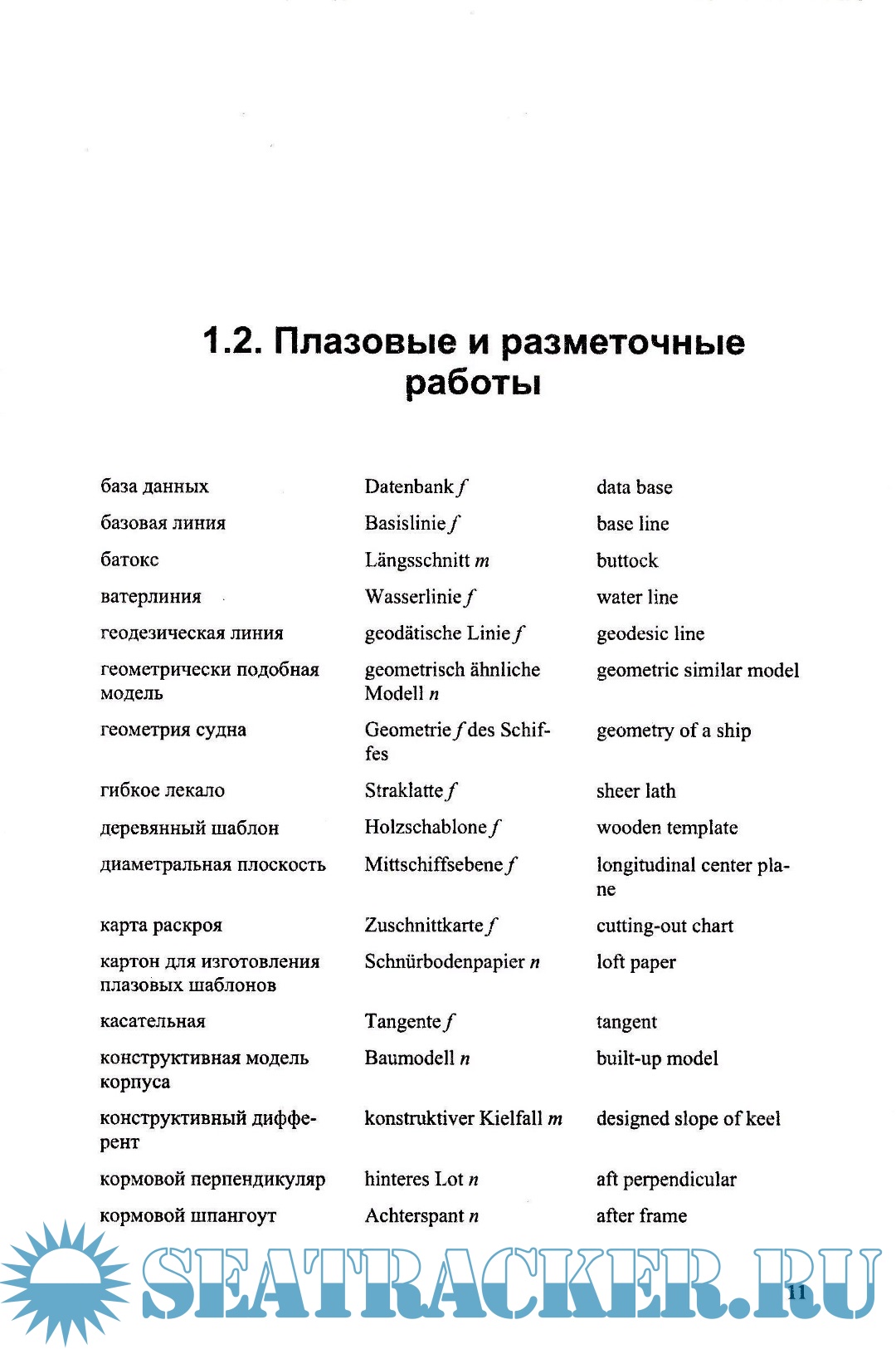 Description: The dictionary, which unites about 1600 terms used in shipyard practice, includes two main sections. The first of them is built according to the "Russian-English-German" placement scheme. Within it, the presented terms are grouped into nine special topics. The second section contains three combined dictionary blocks, within which the same terms are built according to the schemes: Russian-English-German, English-German-Russian and German-Russian-English dictionaries.