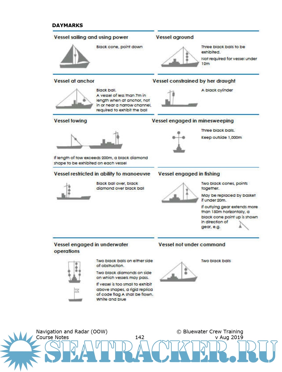 The module will consist of sections on the Collision Regulations, Chart work, Buoyage, Electronic navigation aids, ECDIS, AIS, Radar and ARPA.